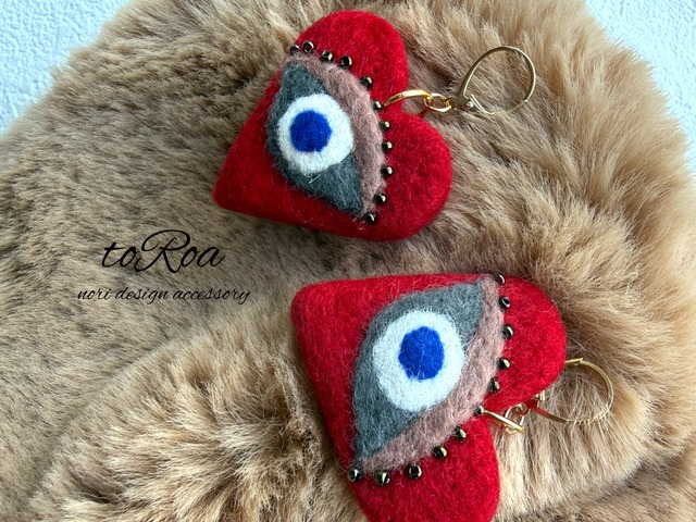 ■ toRoa 赤ハート片面、目デザイン。 鮮やかな赤とグレーの目のデザインが特徴の 個性的なアクセサリー。 ビーズもあしらってます。 キュートなデザインが目を引き、特別な日に華やかな彩りを添えます! バレンタインに向けて⭐︎ 友人とのお出かけ、 さらには贈り物としても喜ばれるアイテムです⭐︎ 金具はどんなに暴れても取れない フレンチフック使用(笑) ハートの大きさ約4センチ ハート幅約8ミリ とにかくインパクトあるのに 軽いです!!!!! 是非⭐︎ イヤリングや樹脂に変更可能です!