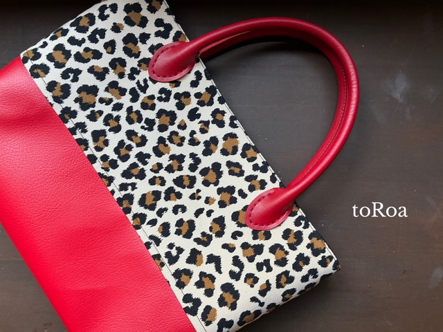 レオパード柄。 レオパード柄×赤のレザー。 パッと目を引くミニトートバッグです。 手軽に持ち歩けるサイズ感です。 ファッションのアクセントとして、普段使いはもちろん、プレゼントにもおすすめです。あなたのスタイルに合わせて、是非このトートバッグを取り入れてみてください! サイズ(約)幅31㎝×高さ18.5㎝マチ10㎝ ペットボトルの参考写真あり 切り替え 赤合皮レザー 内布 赤帆布生地 内ポケット 2つ iPhone16を入れています。 添付写真参考に。 ゴールドマグネットボタン1つ 持ち手 赤合皮 40㎝ *本物に近い色合いになるよう写真を撮っておりますが、実物とは多少異なる場合もございます。 ご了承くださいませ。