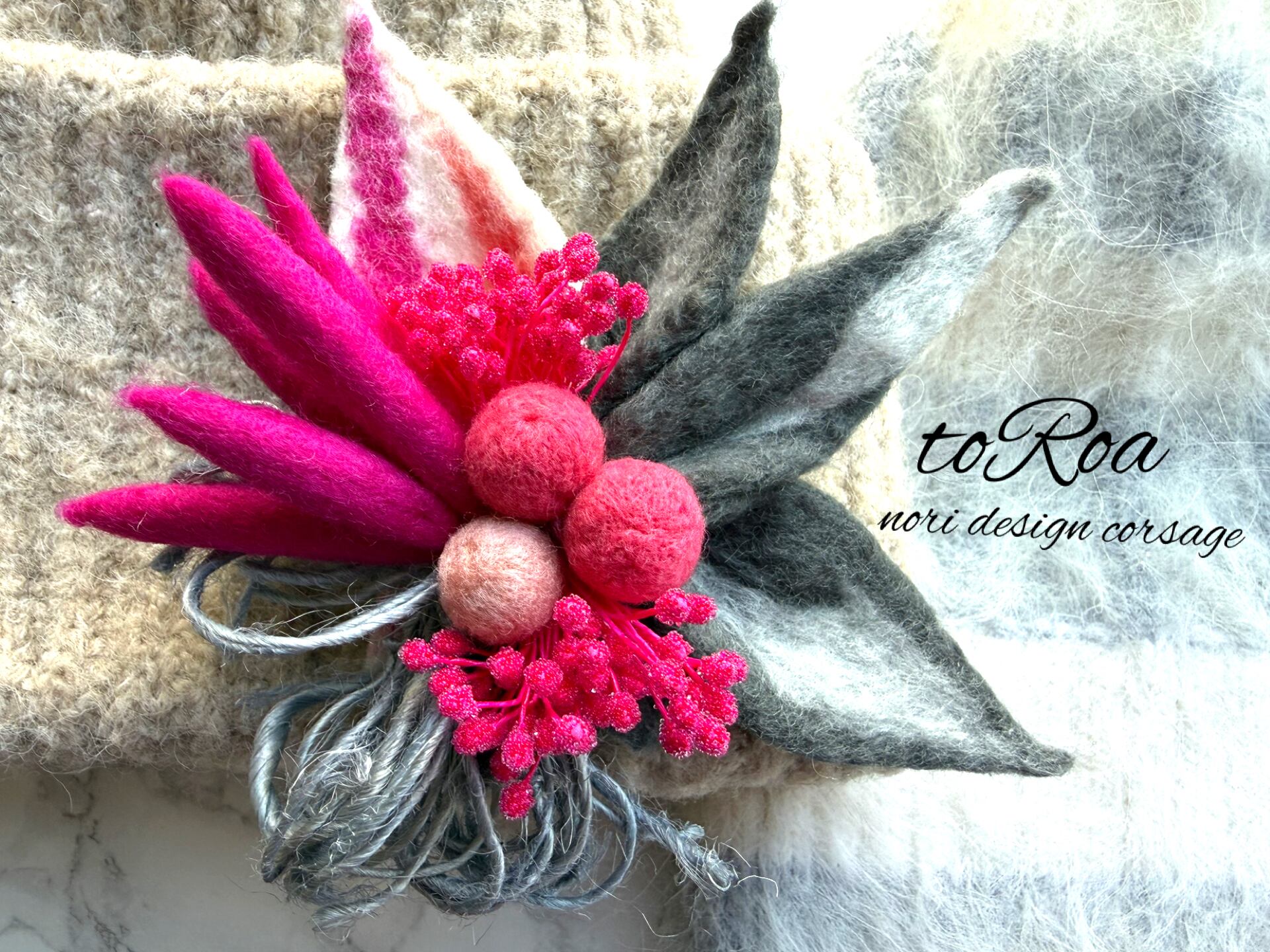 ホワイト、ビビットピンク、サーモンオレンジ、グレー、ライトグレー、チェリーピンクなどの羊毛をつかい