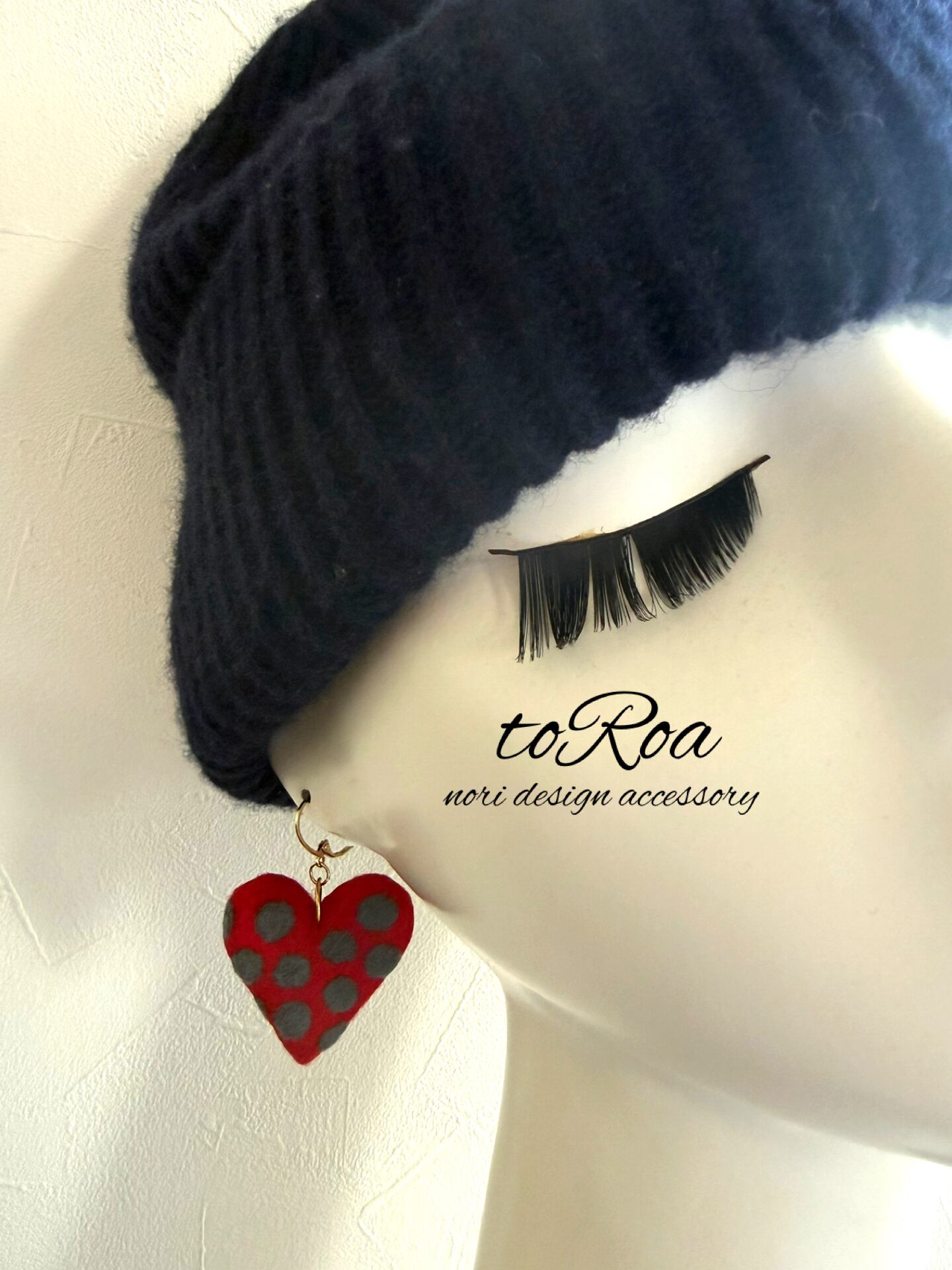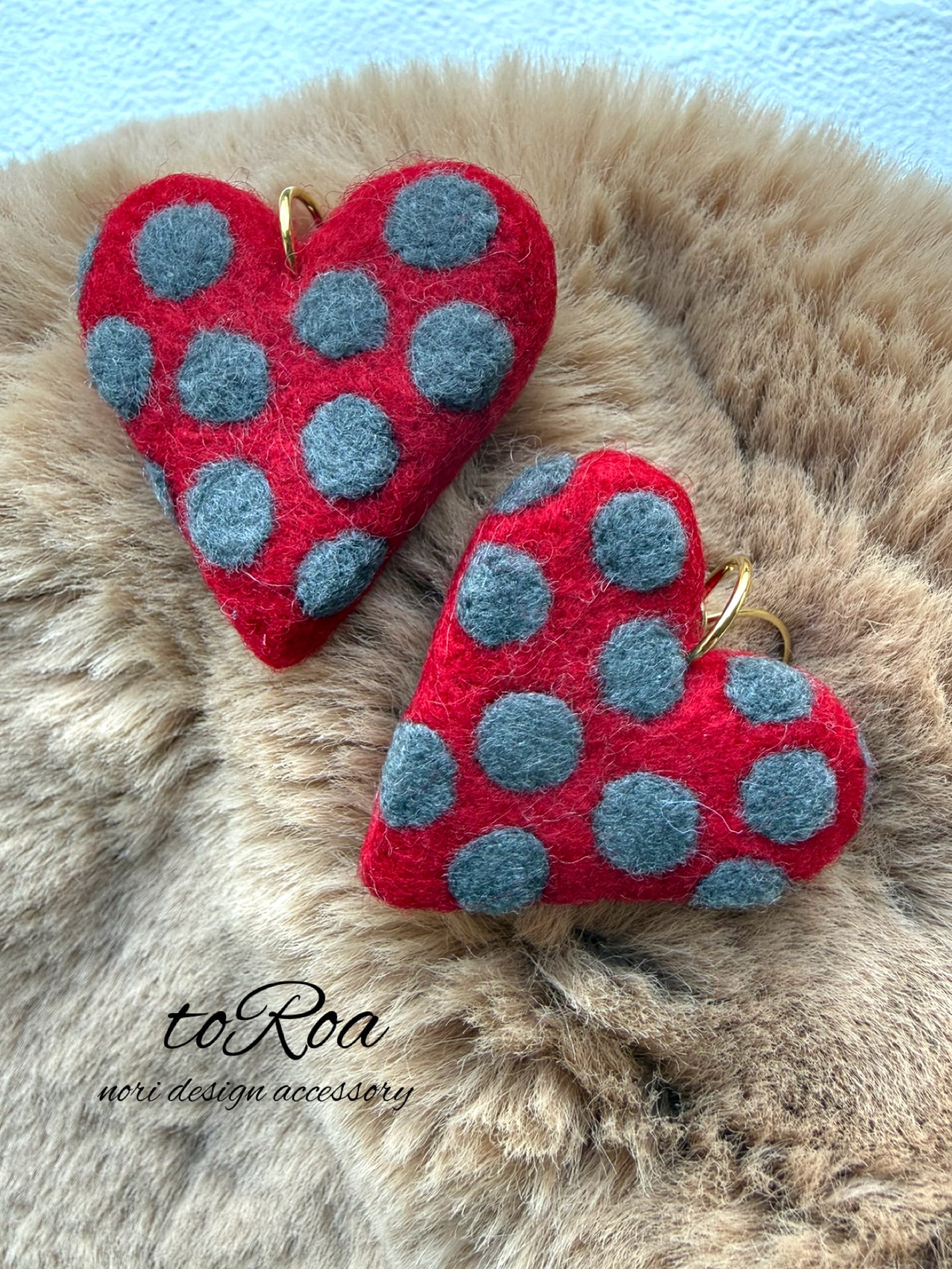 toRoa 赤ハートグレー両面ドット