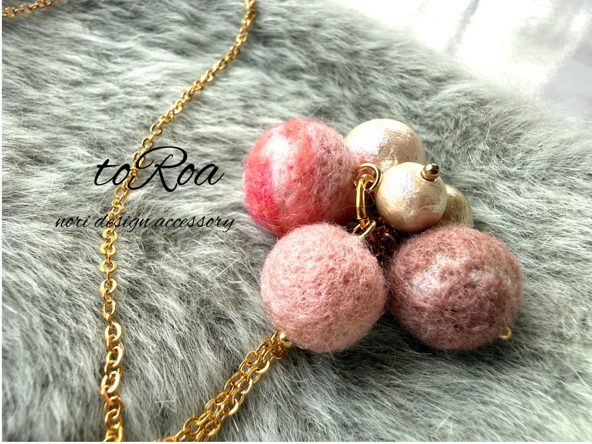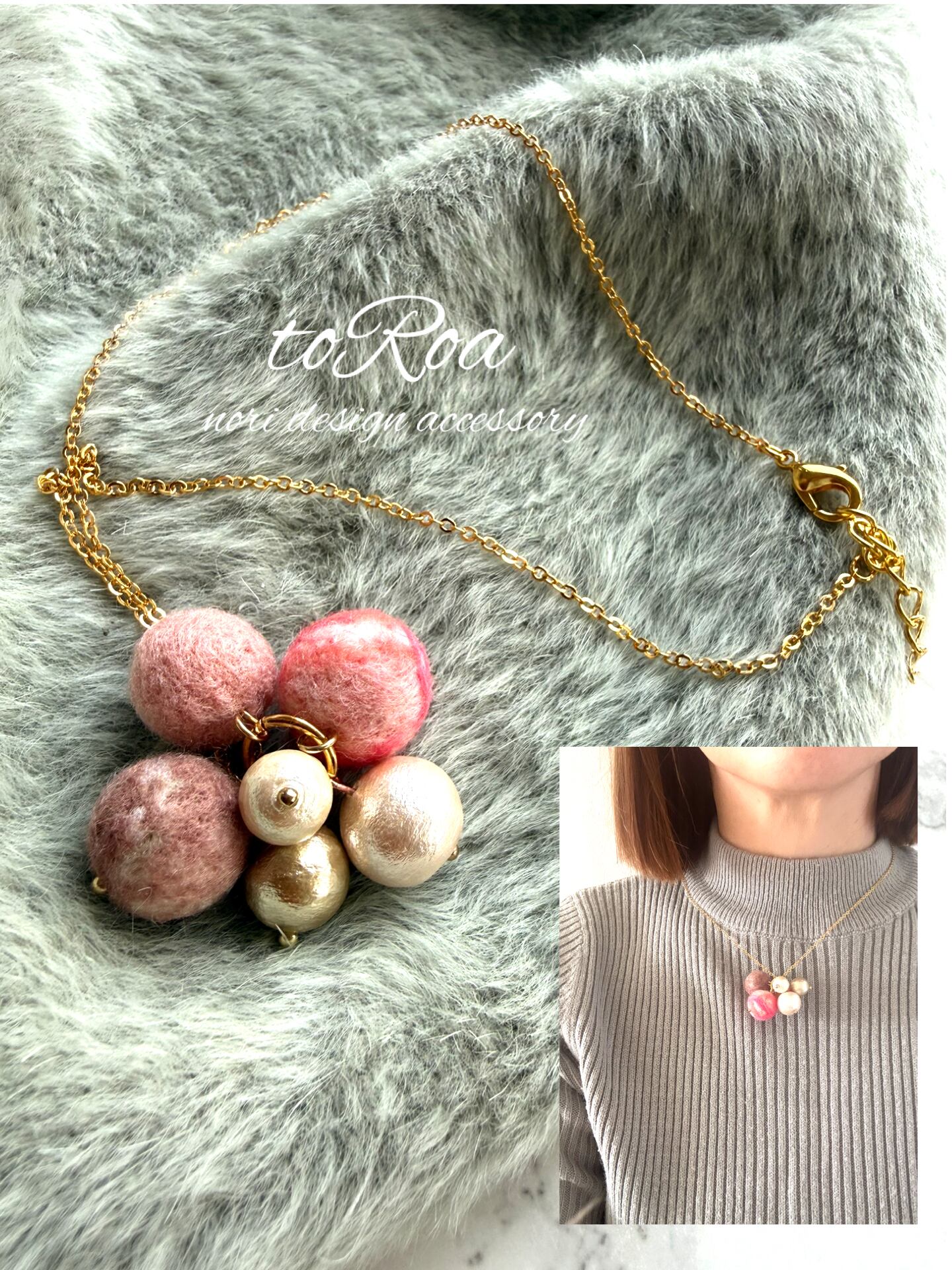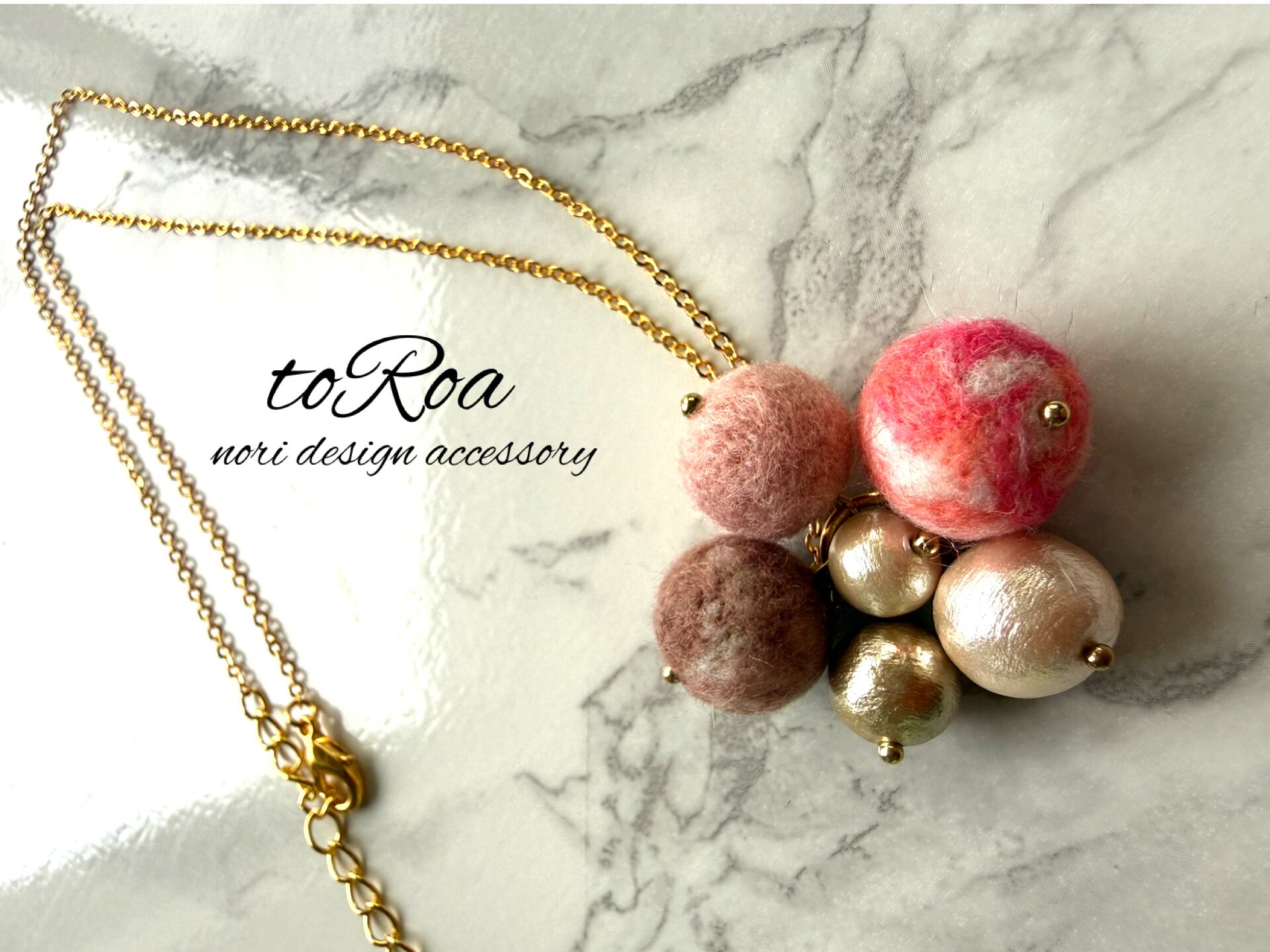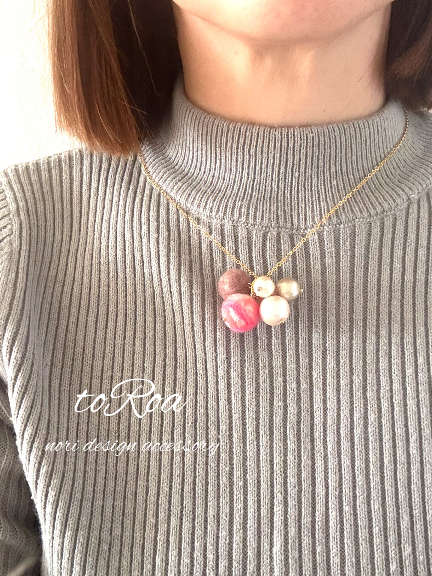 toRoa羊毛ネックレス淡ピンクコットンパール