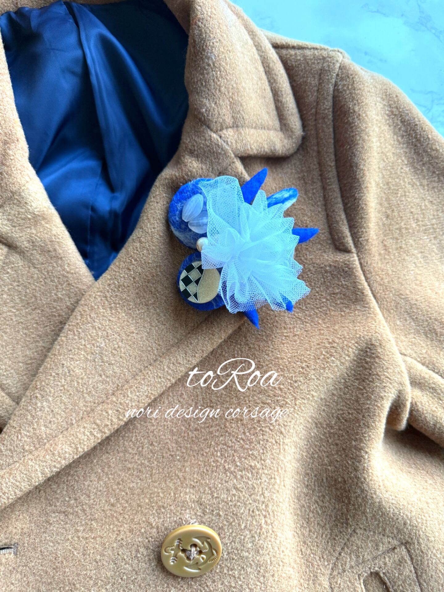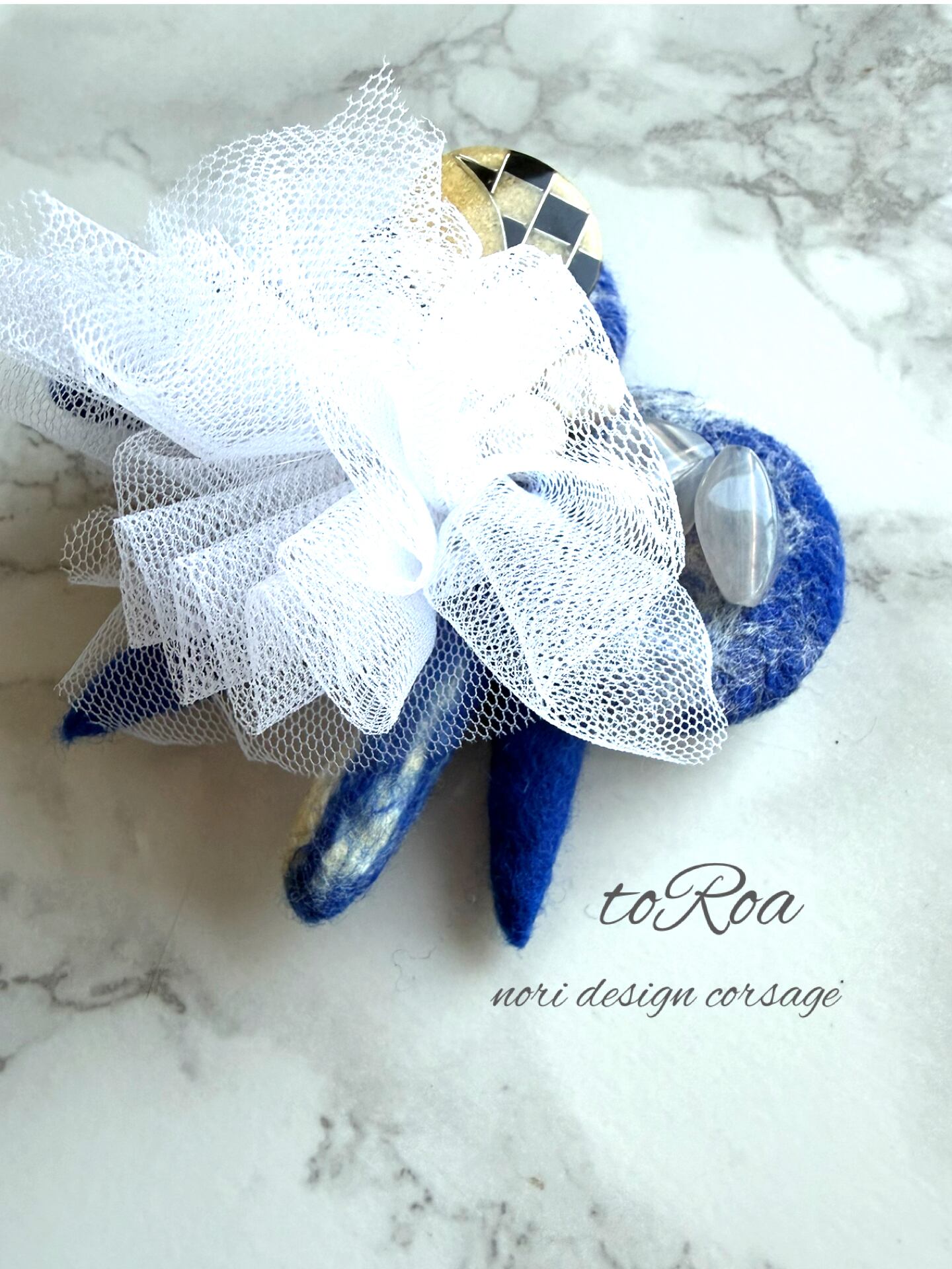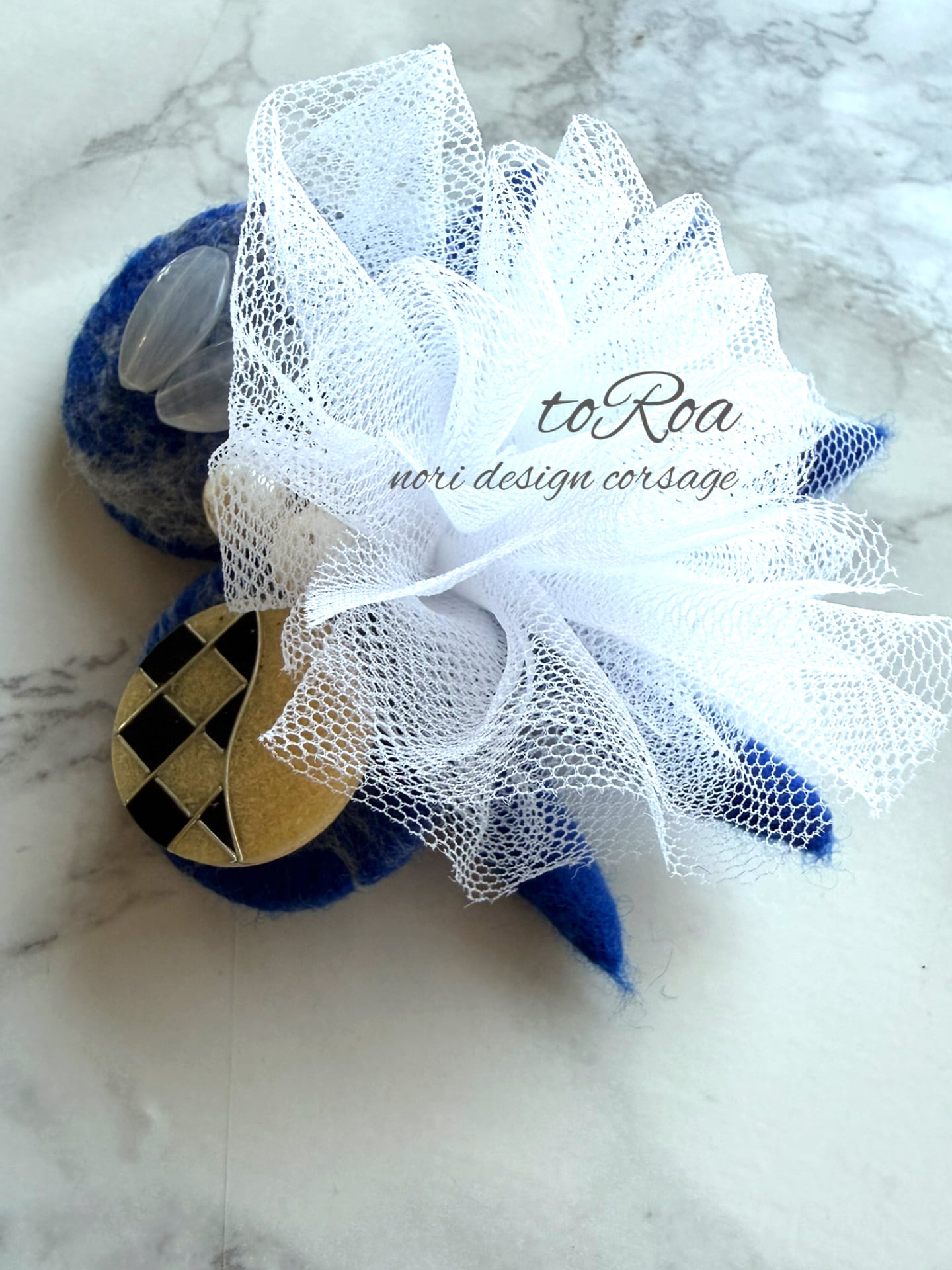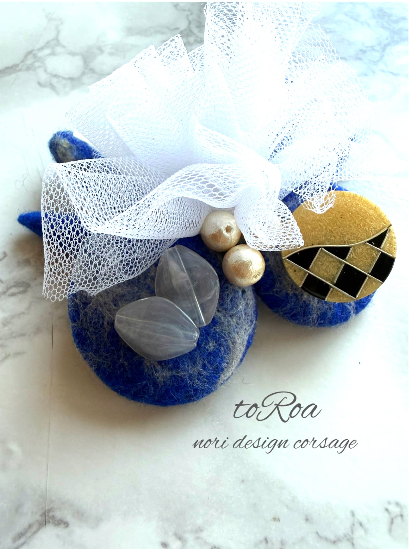 ロイヤルブルーとアンティークボタンコサージュ