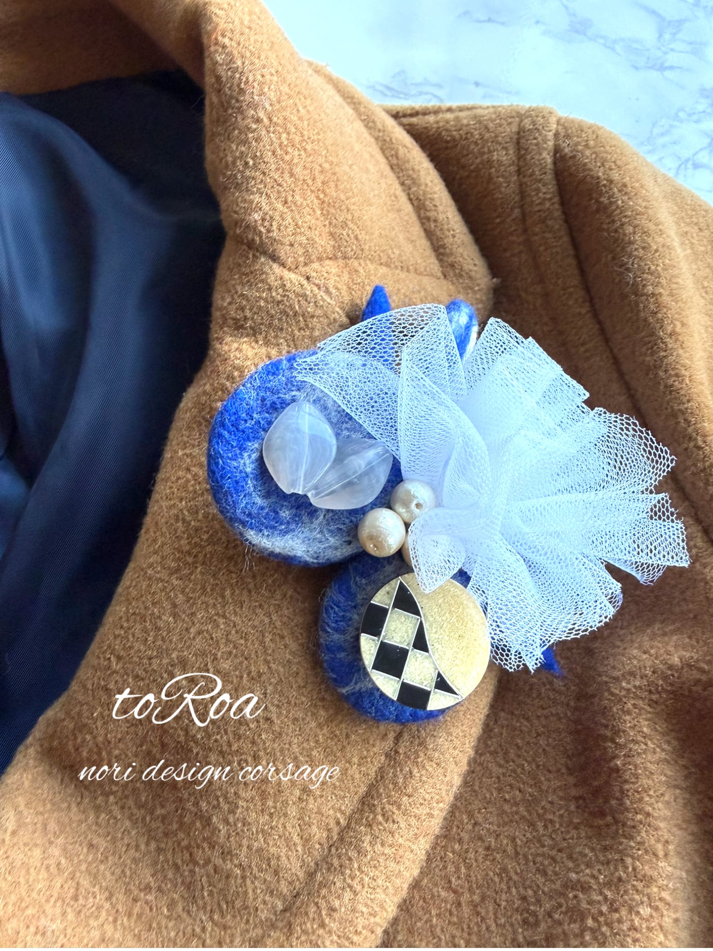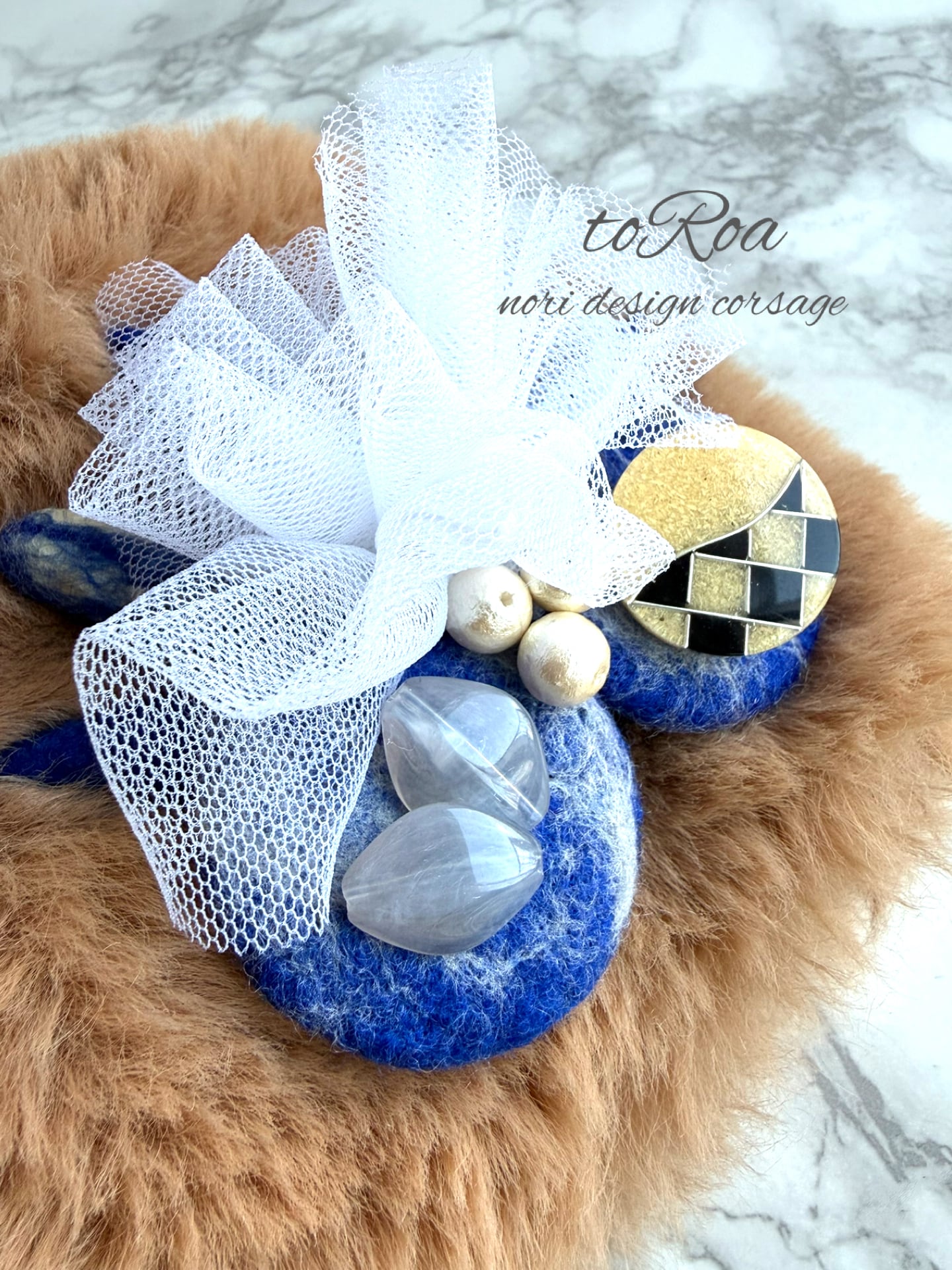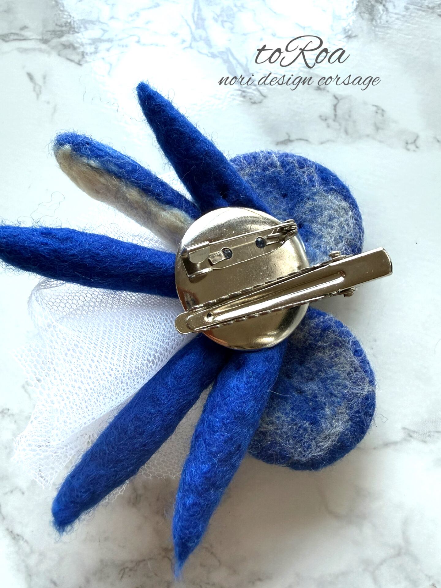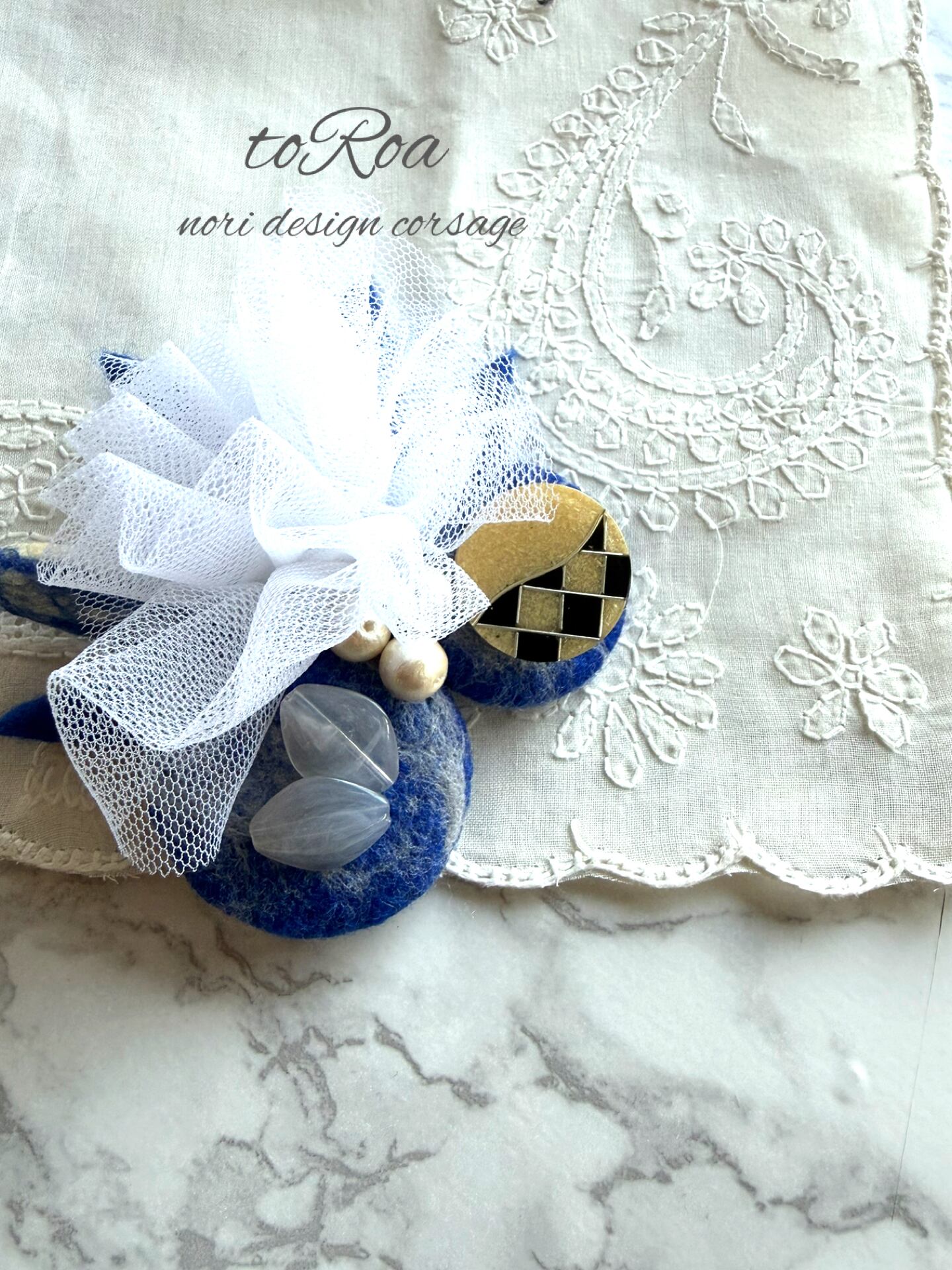ロイヤルブルーとアンティークボタンコサージュ