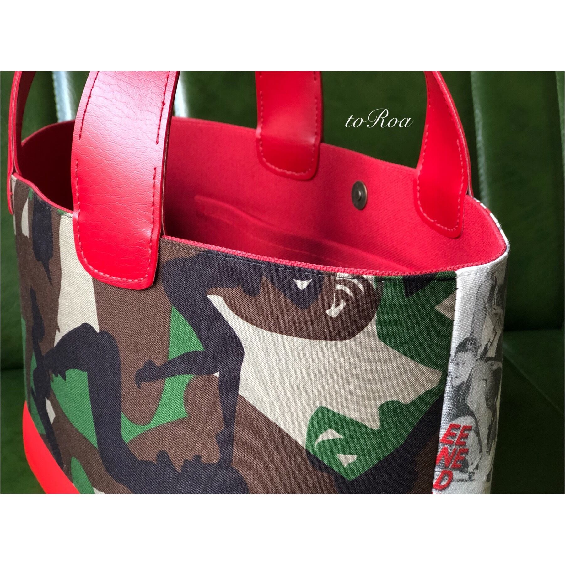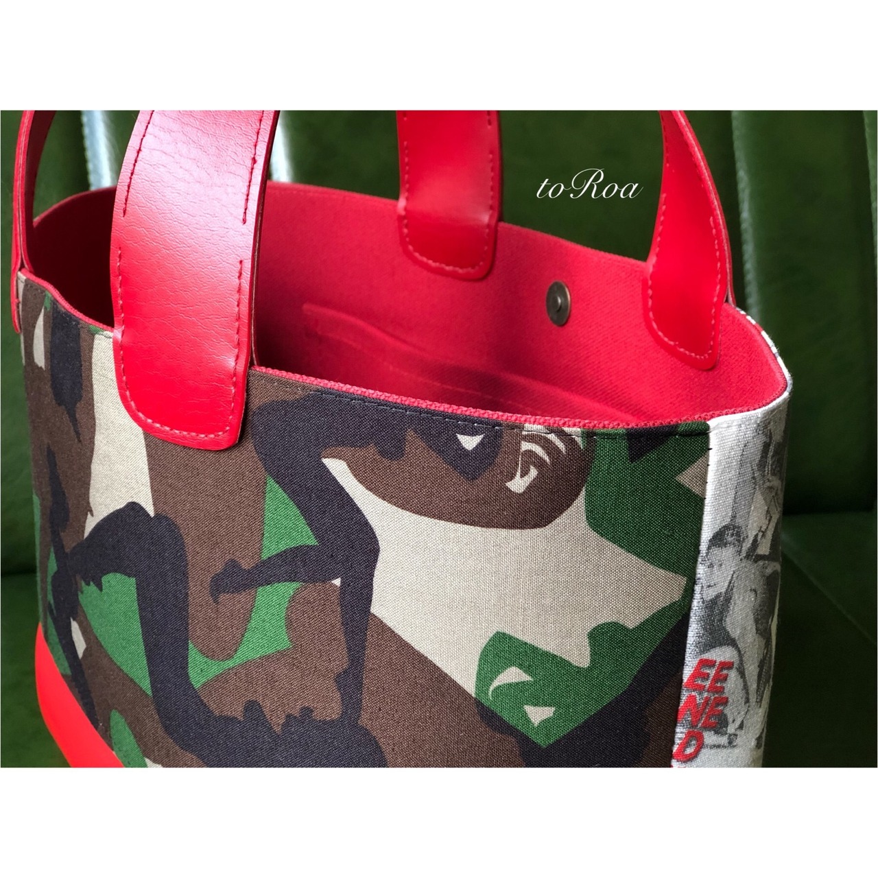 カモフラはよく見たらただのカモフラじゃない面白いカモフラ生地の柄違いトートバッグ。