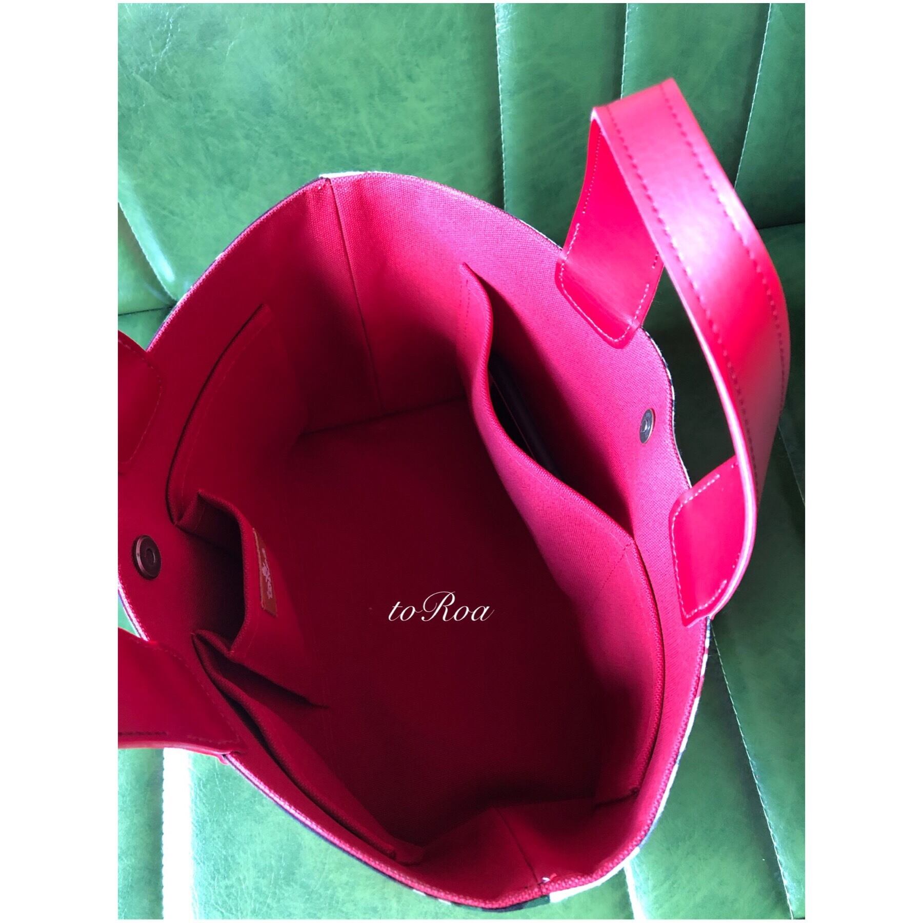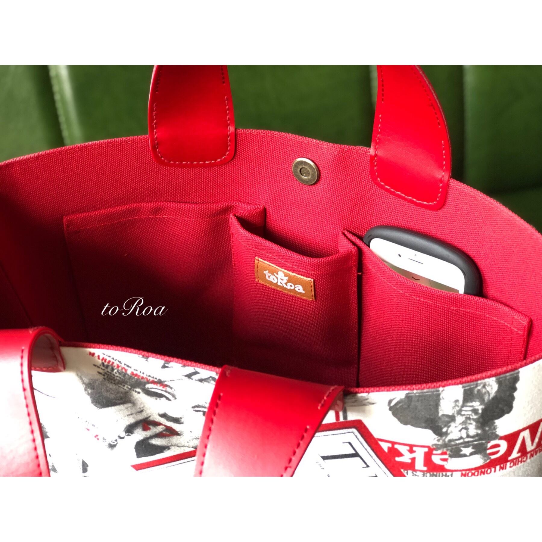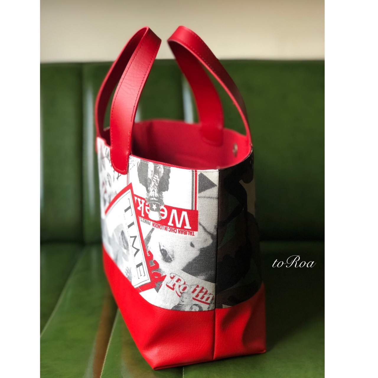 赤でまとめて柄も目立つカッコいいバッグに仕上げました。