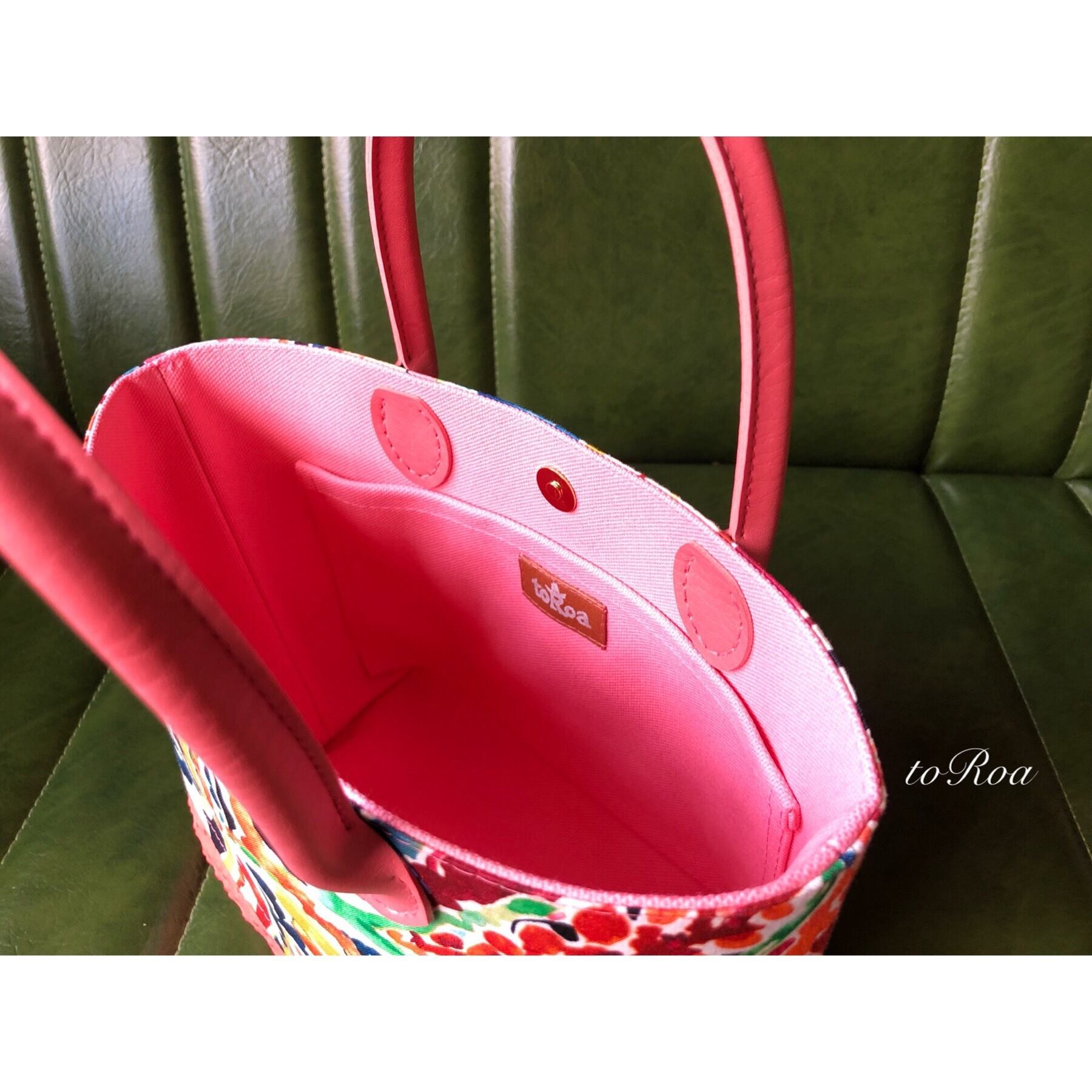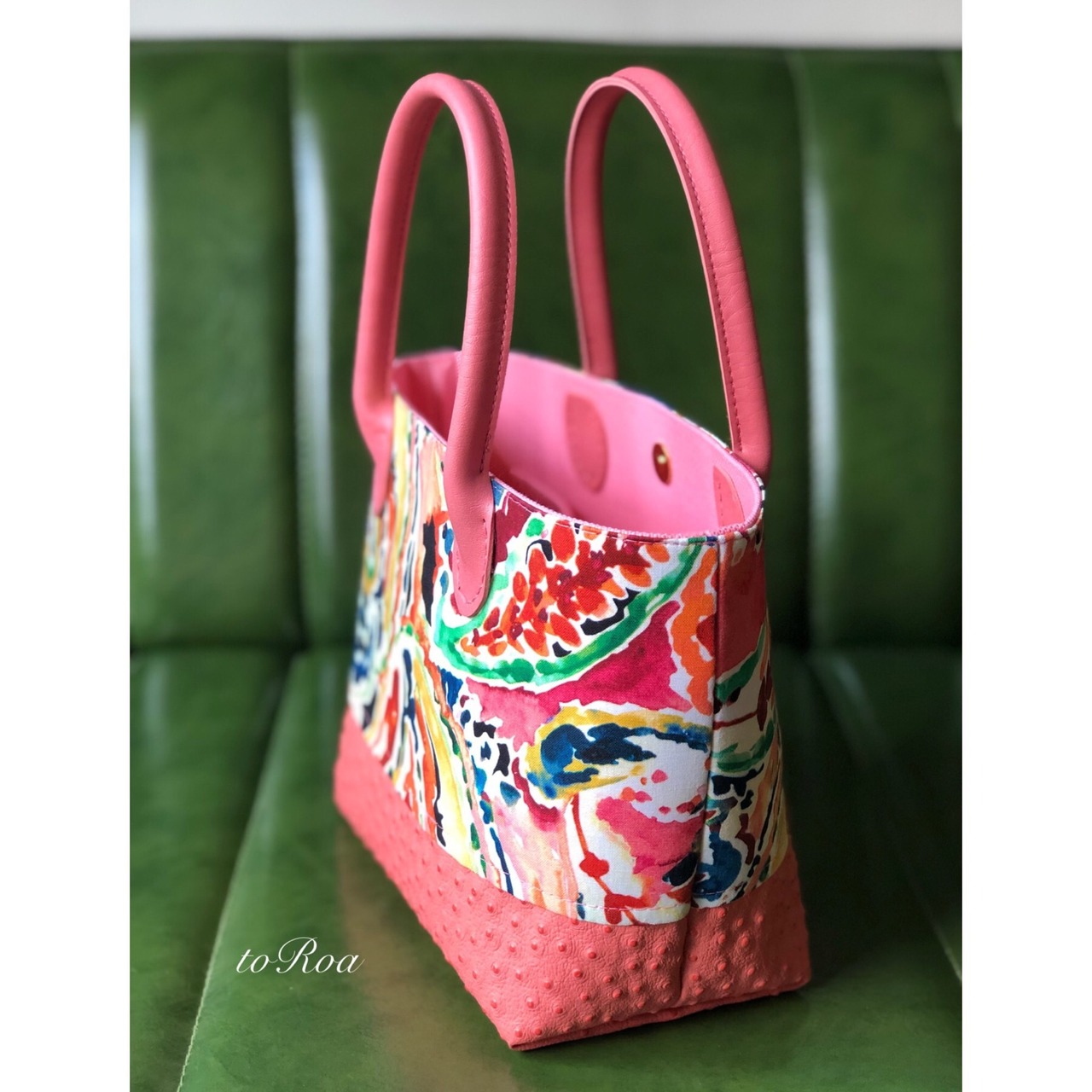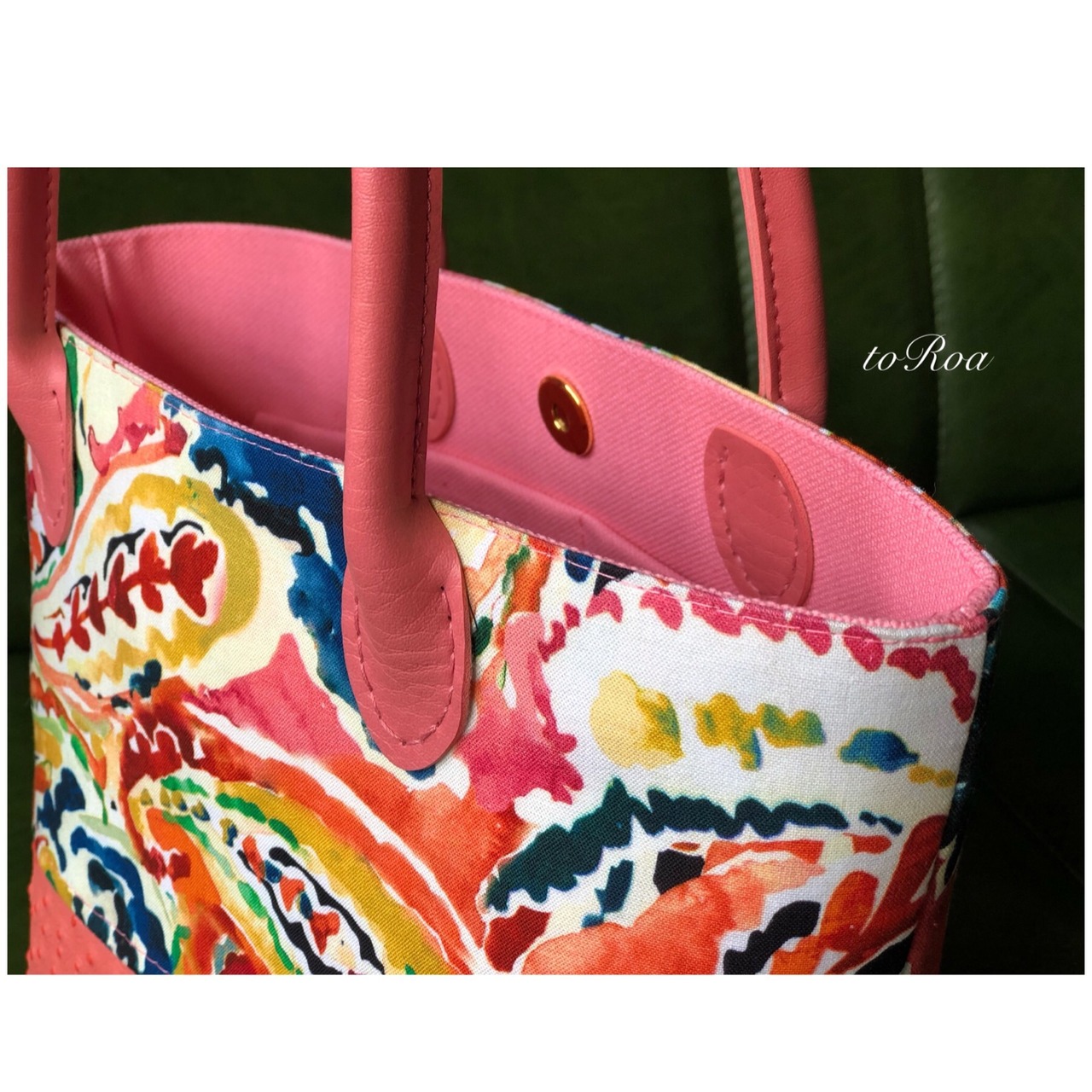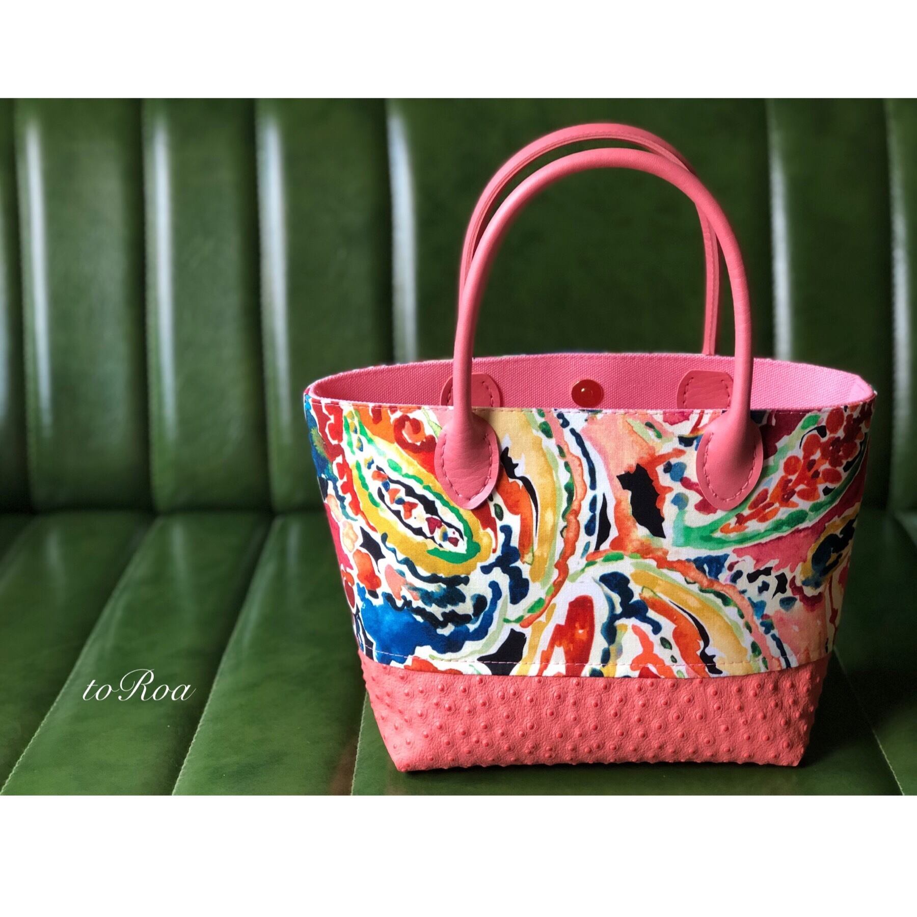 カラフルなペイズリー風ピンクのミニトートバッグ