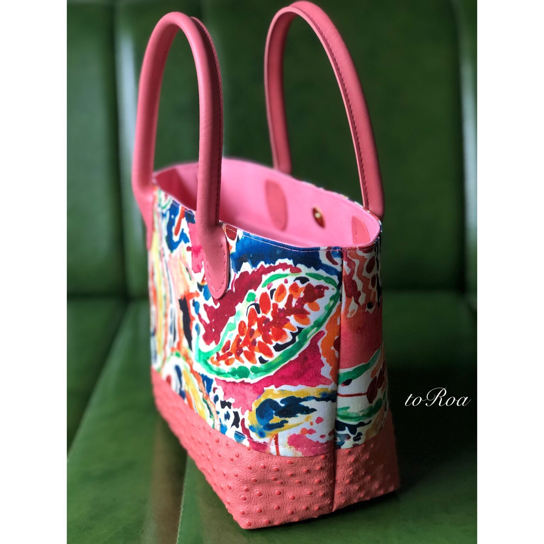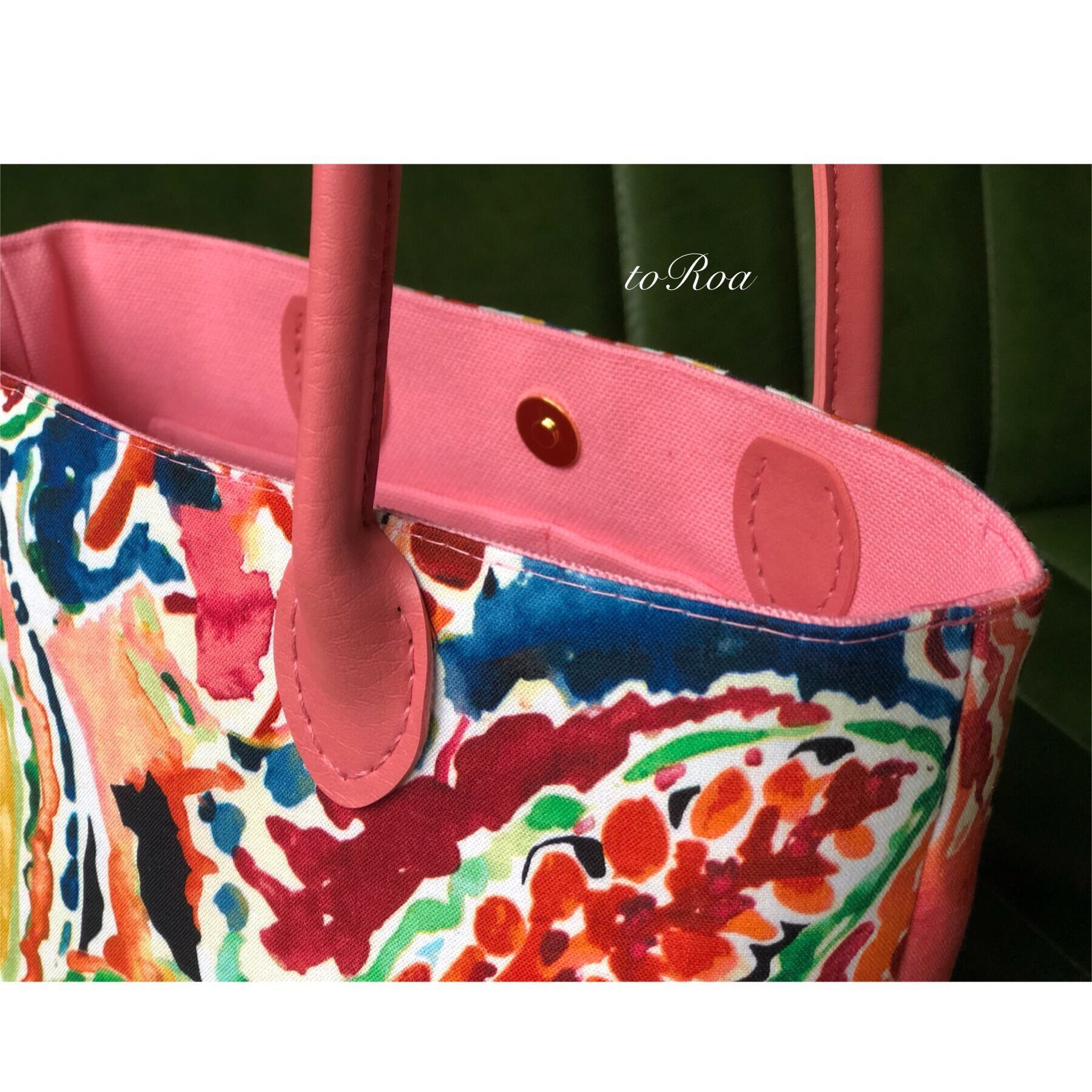 カラフルなペイズリー風ピンクのミニトートバッグ