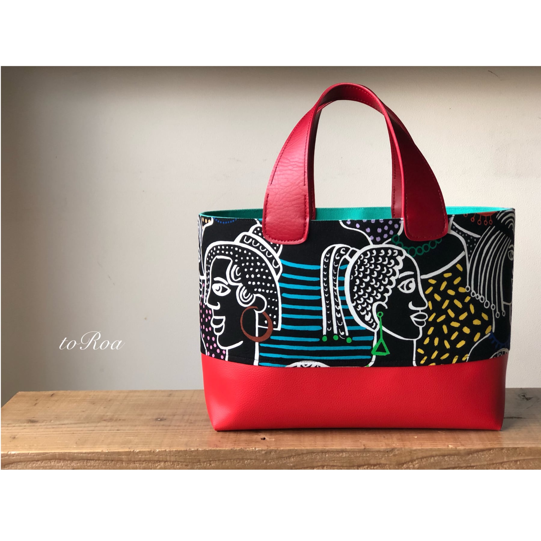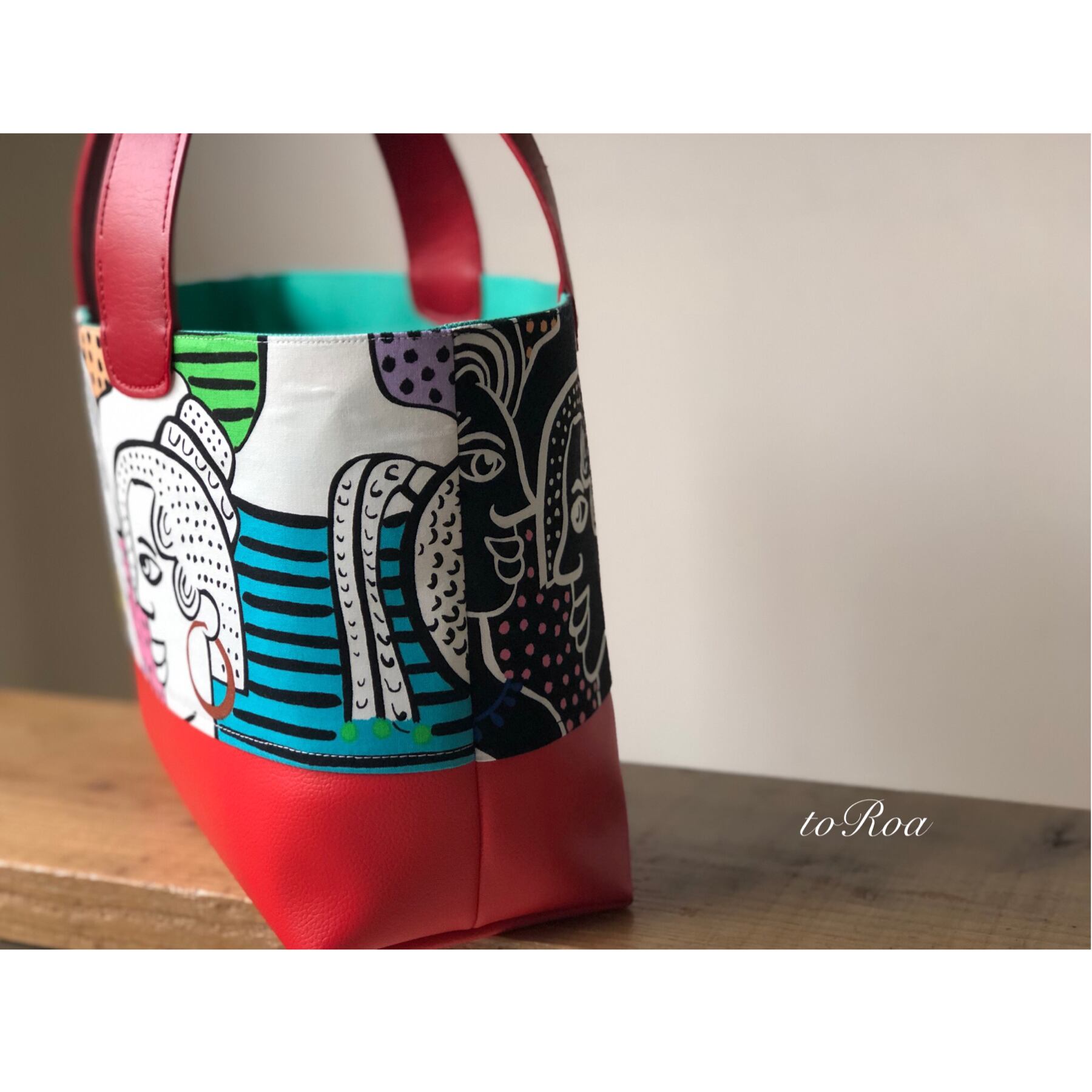 白と黒、横顔女性Lサイズ赤のトートバッグ