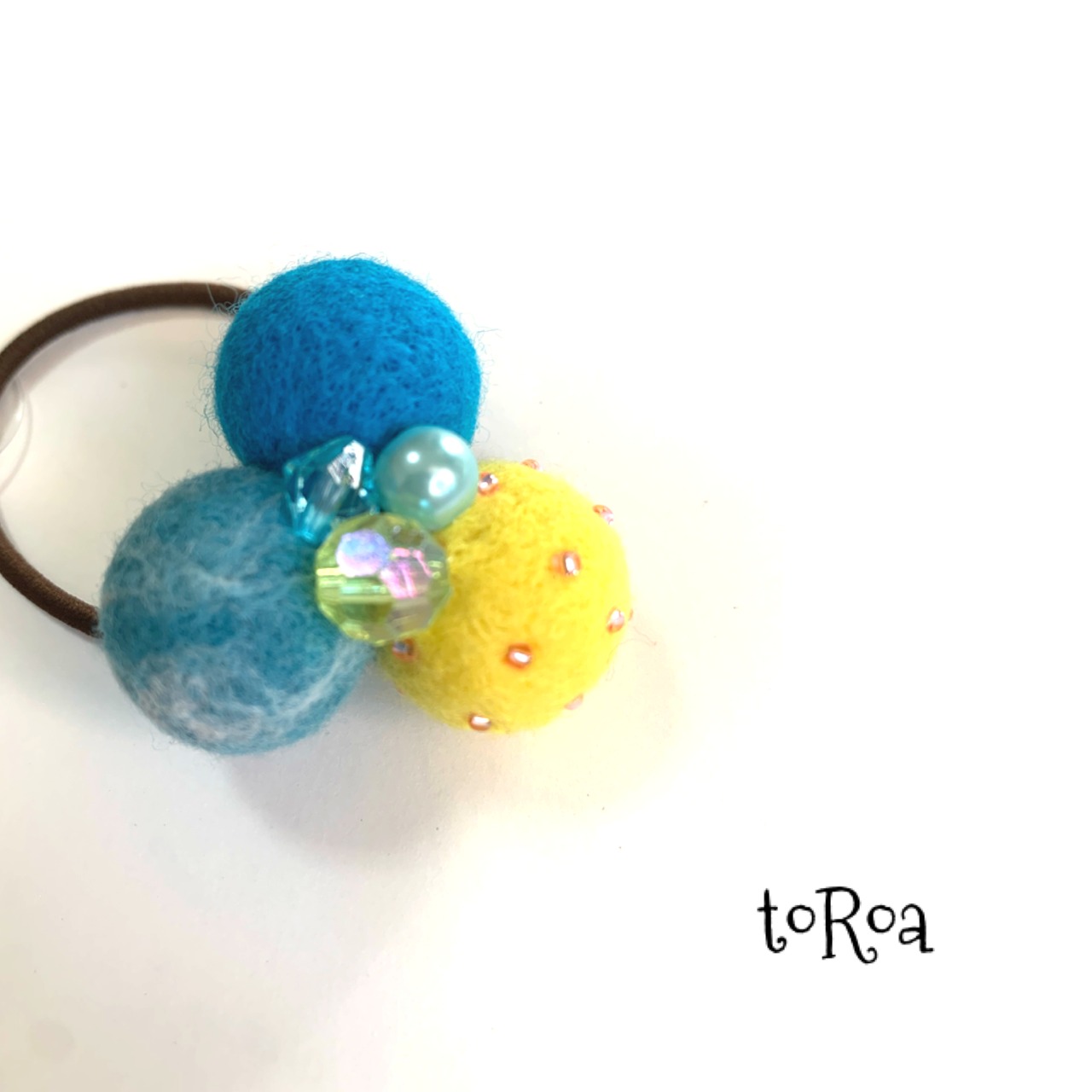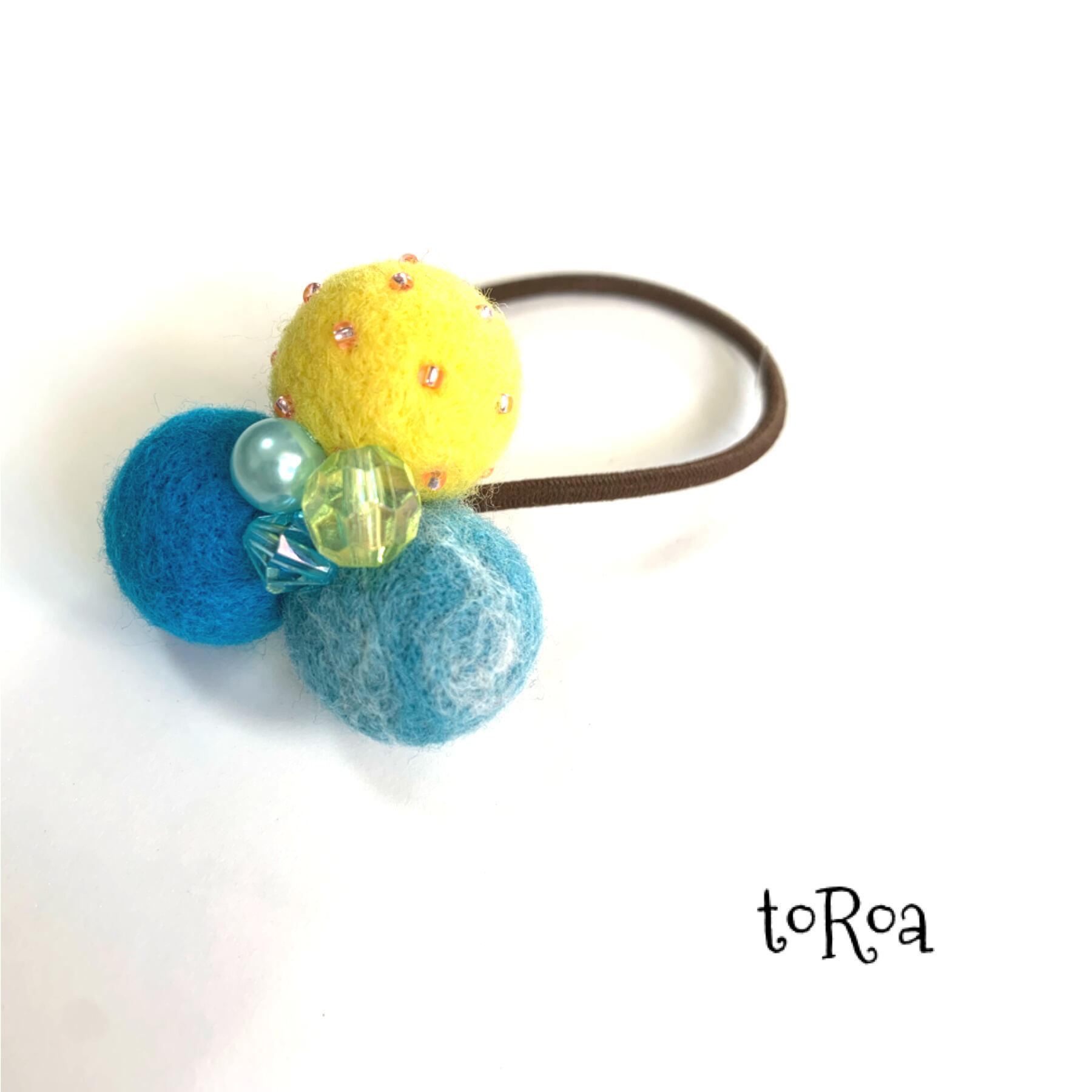 羊毛ボール3個を使ったコロコロかわいいヘアゴムです。