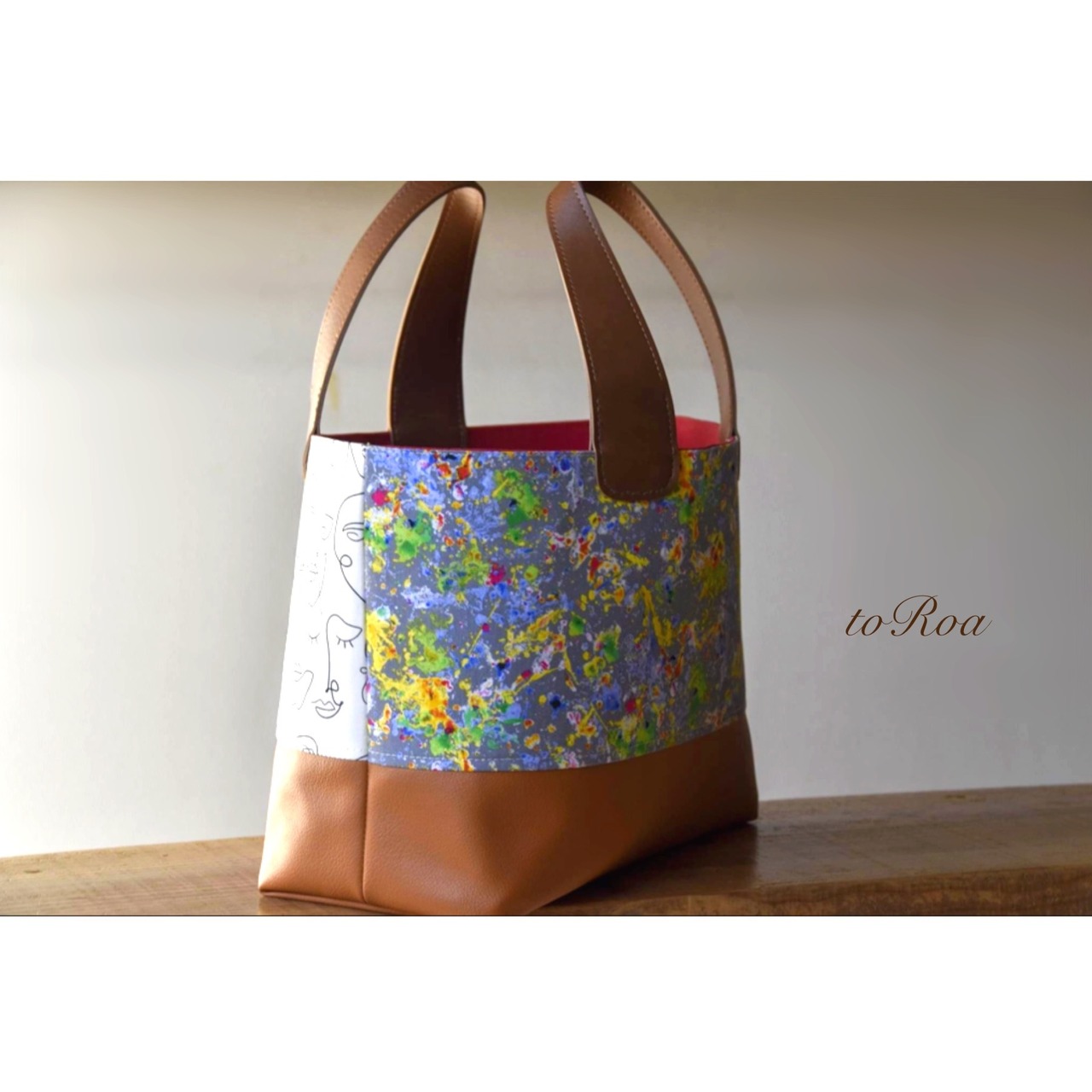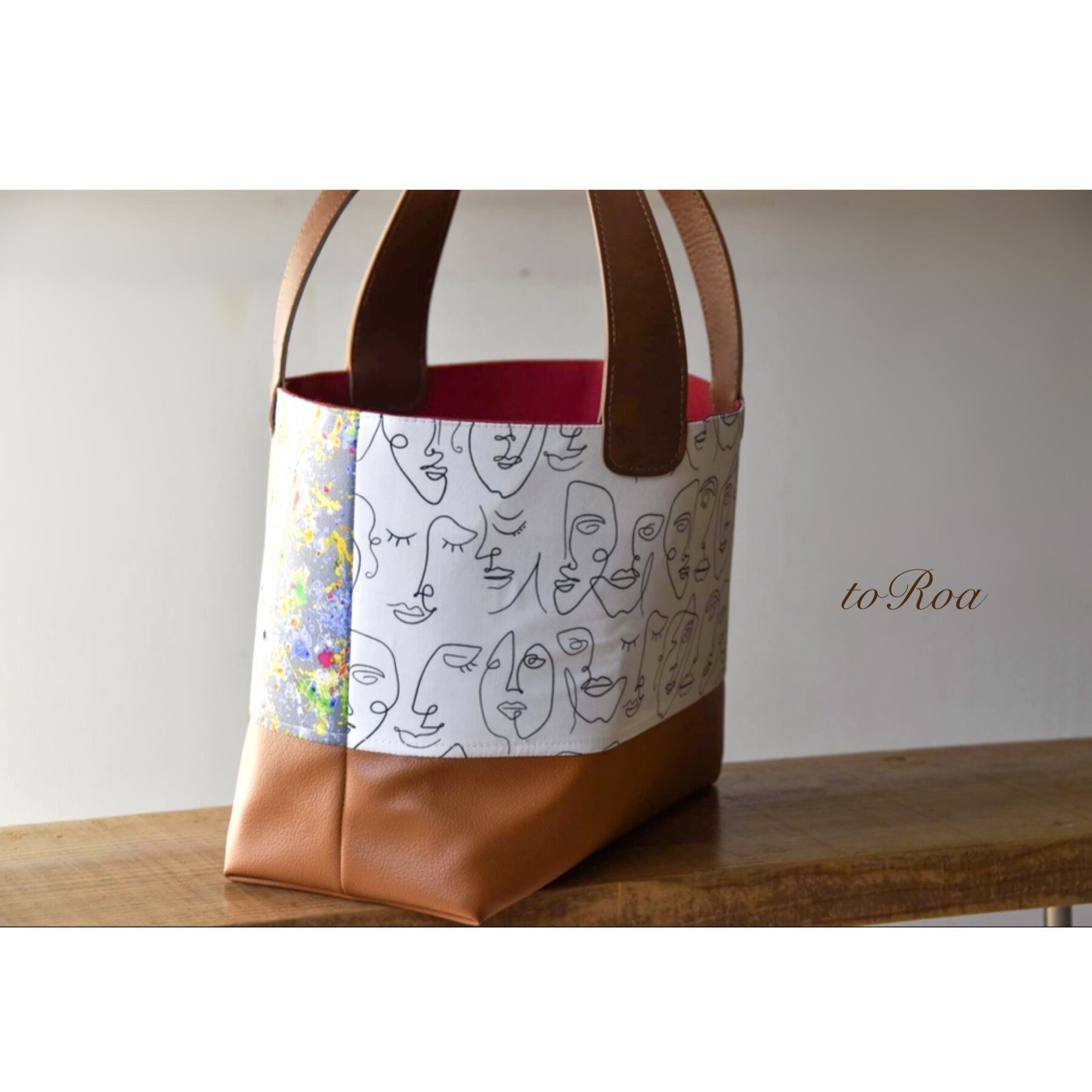 ビビッドカラーペンキ柄&フェイス柄柄違いLサイズトートバッグ