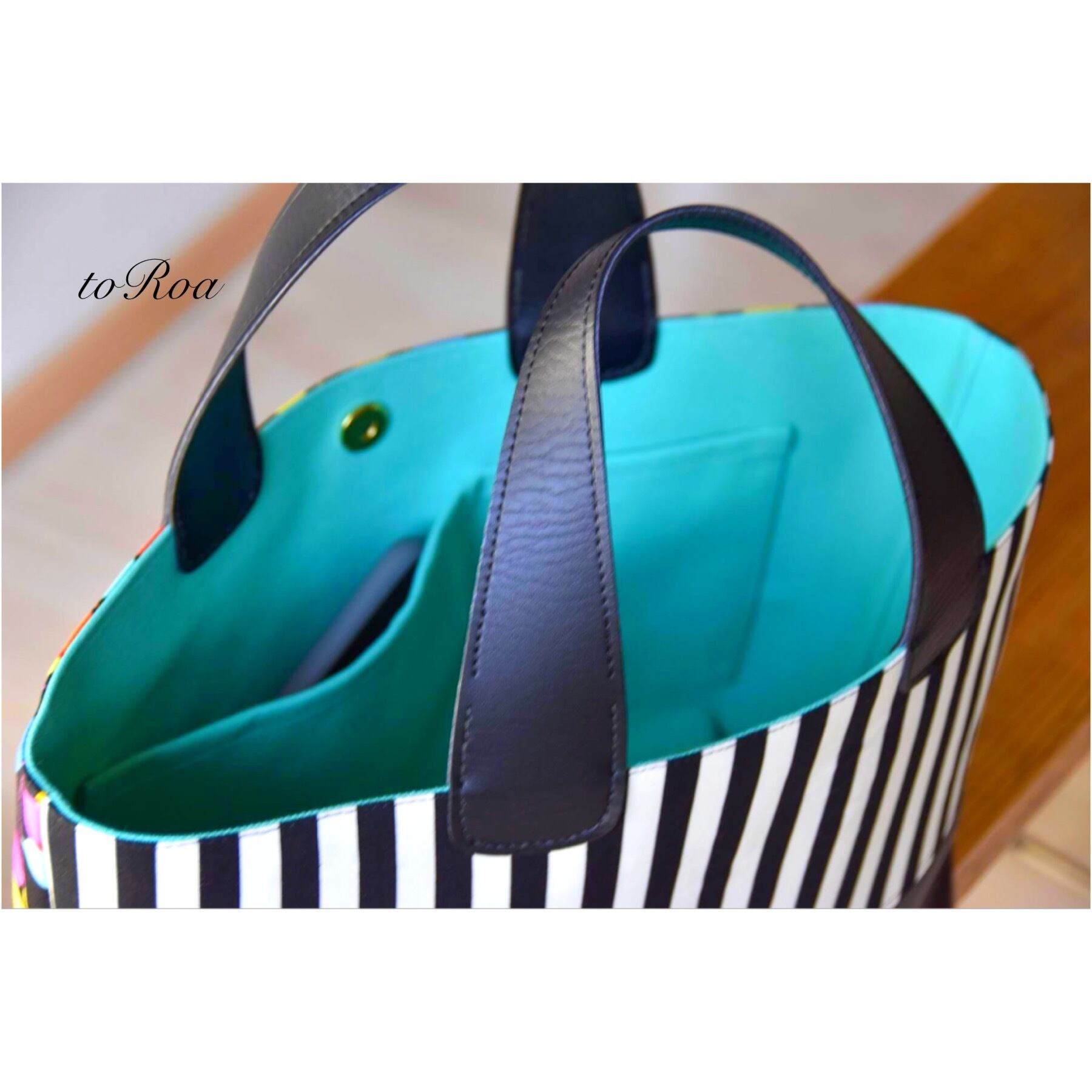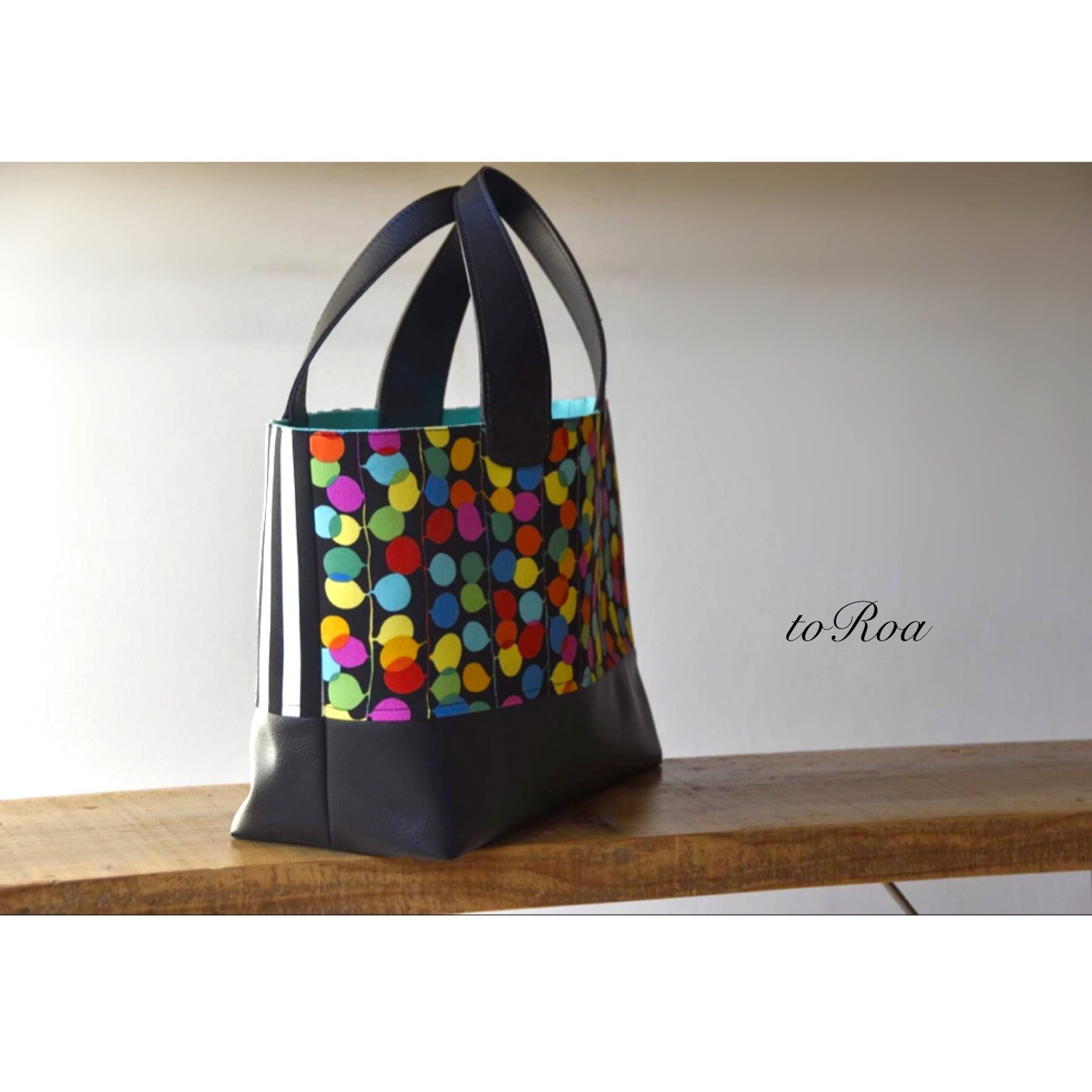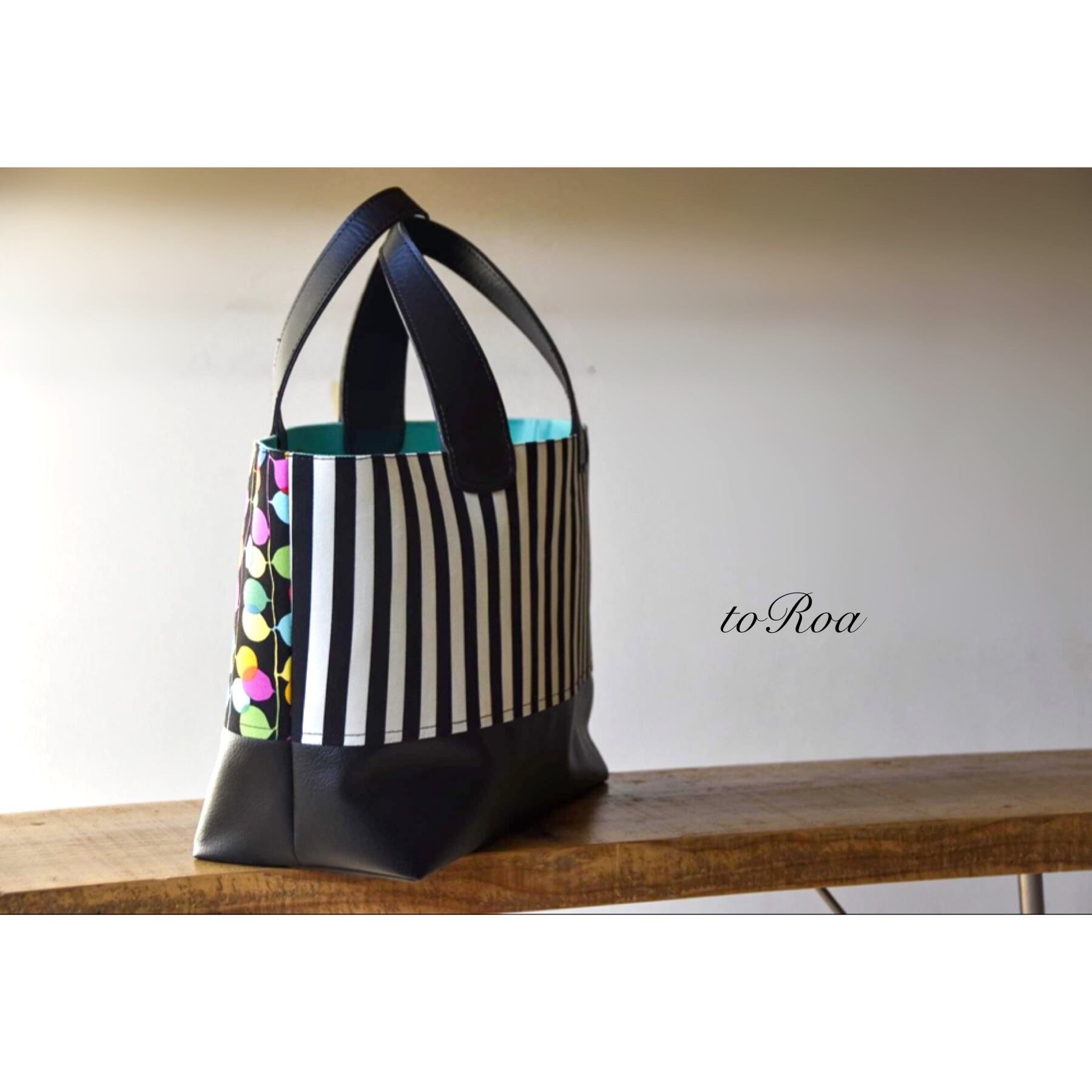 ストライプ&カラフルな風船柄柄違いLサイズトートバッグ
