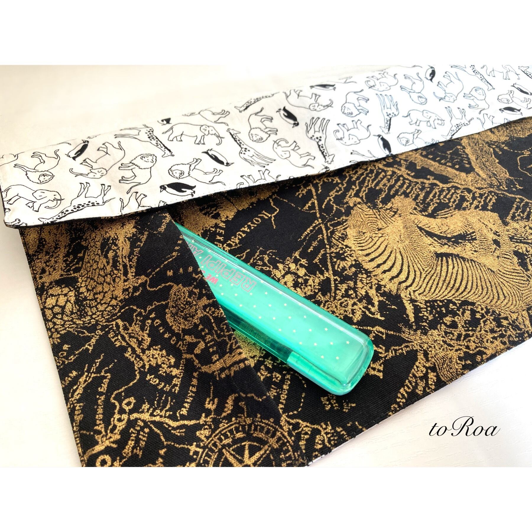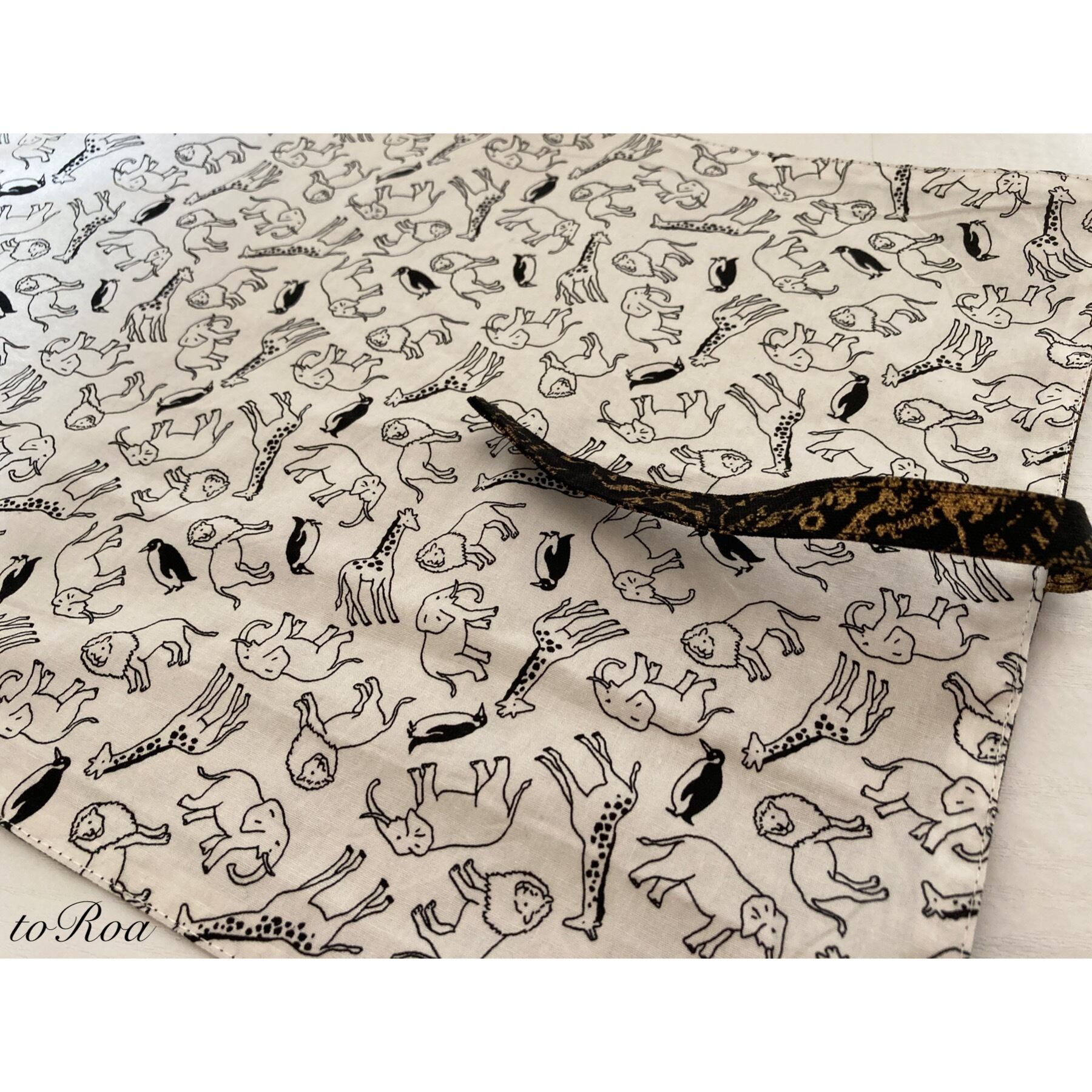 袋部分にお箸を入れてくるくる丸めて紐で縛ればお箸袋にもなり給食袋いらずのナフキン。