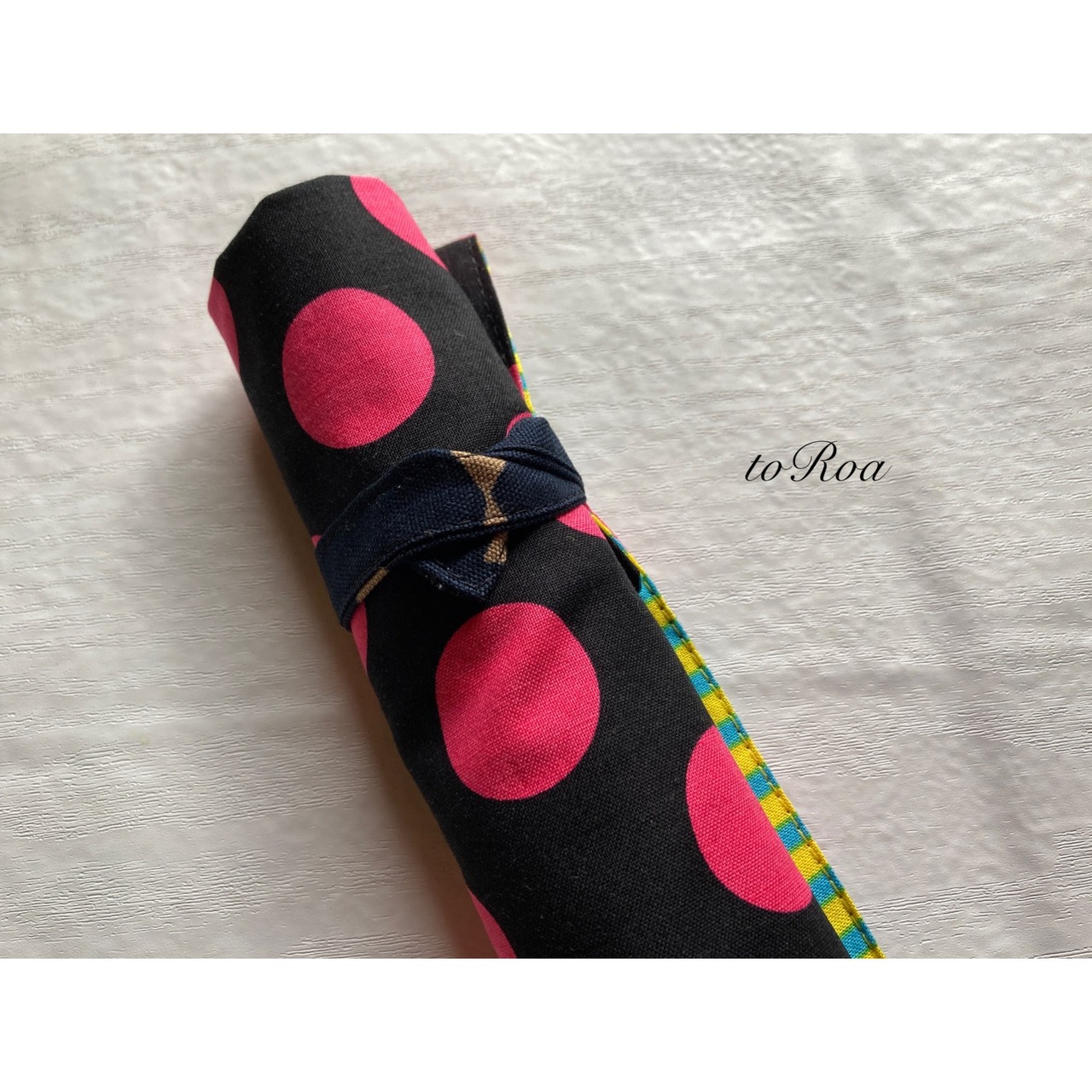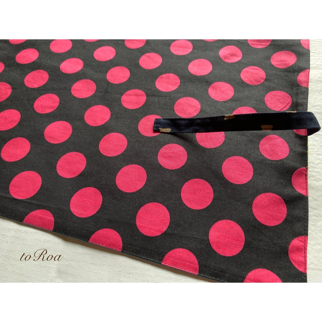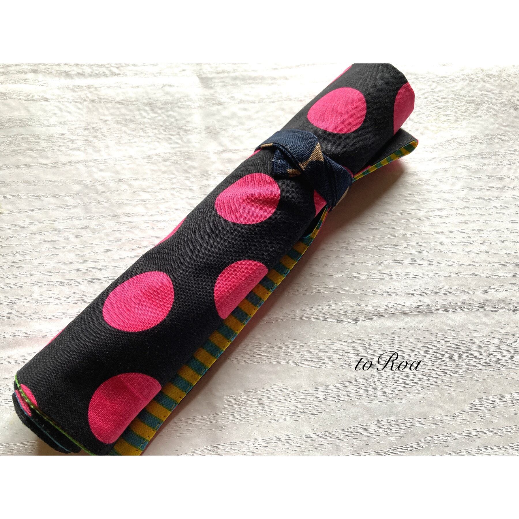 袋部分にお箸を入れてくるくる丸めて紐で縛ればお箸袋にもなり給食袋いらずのナフキン。