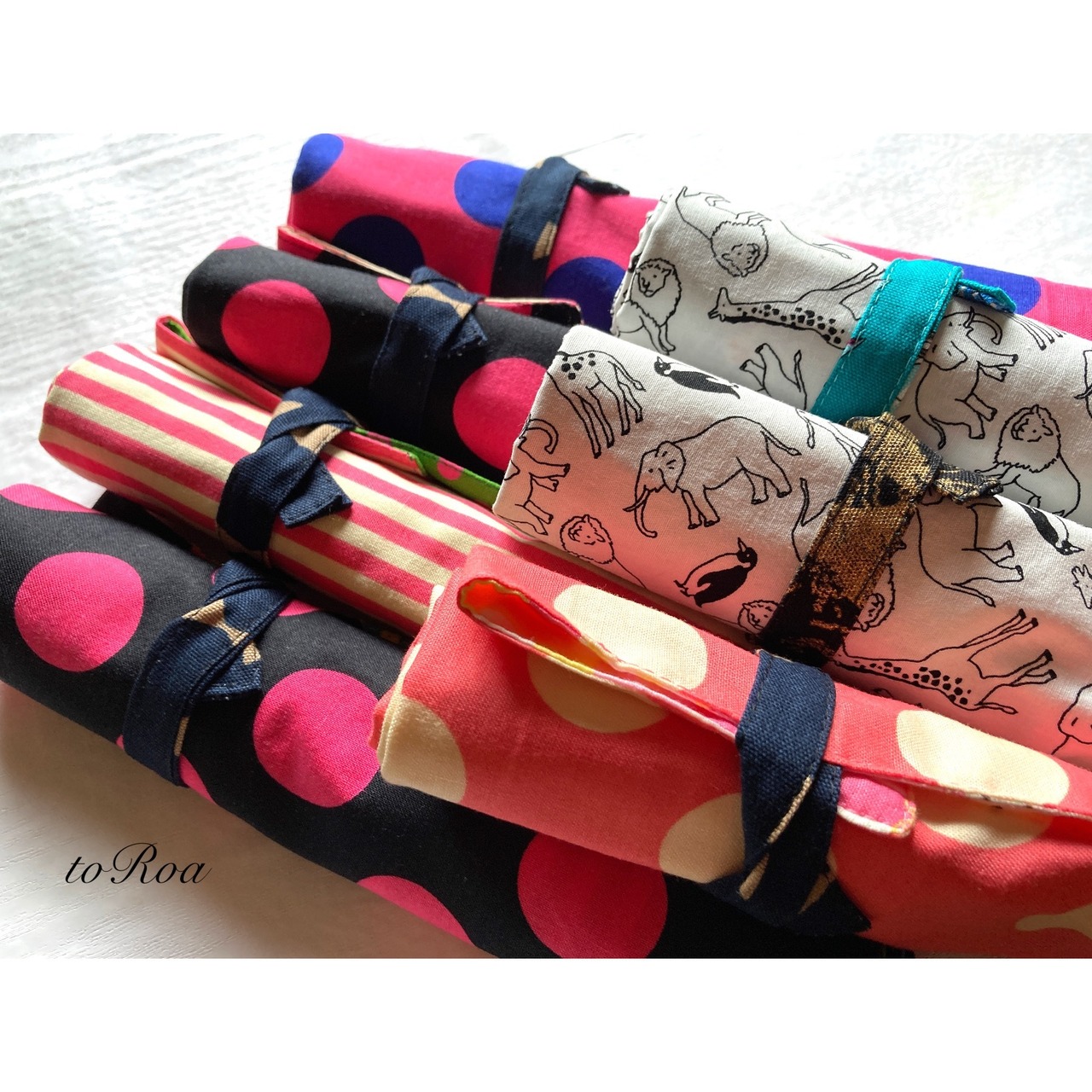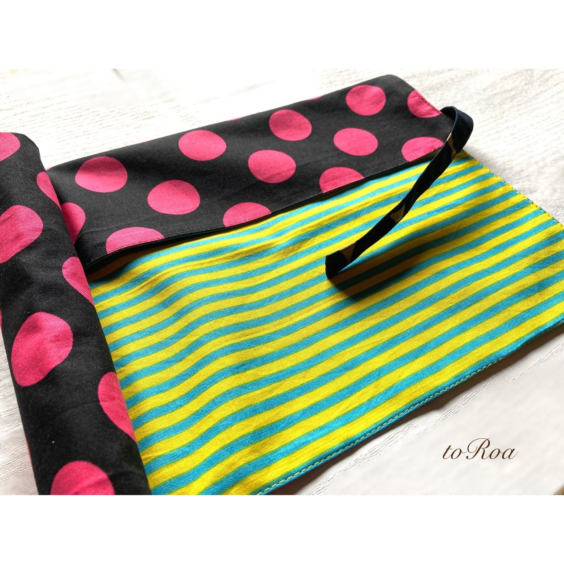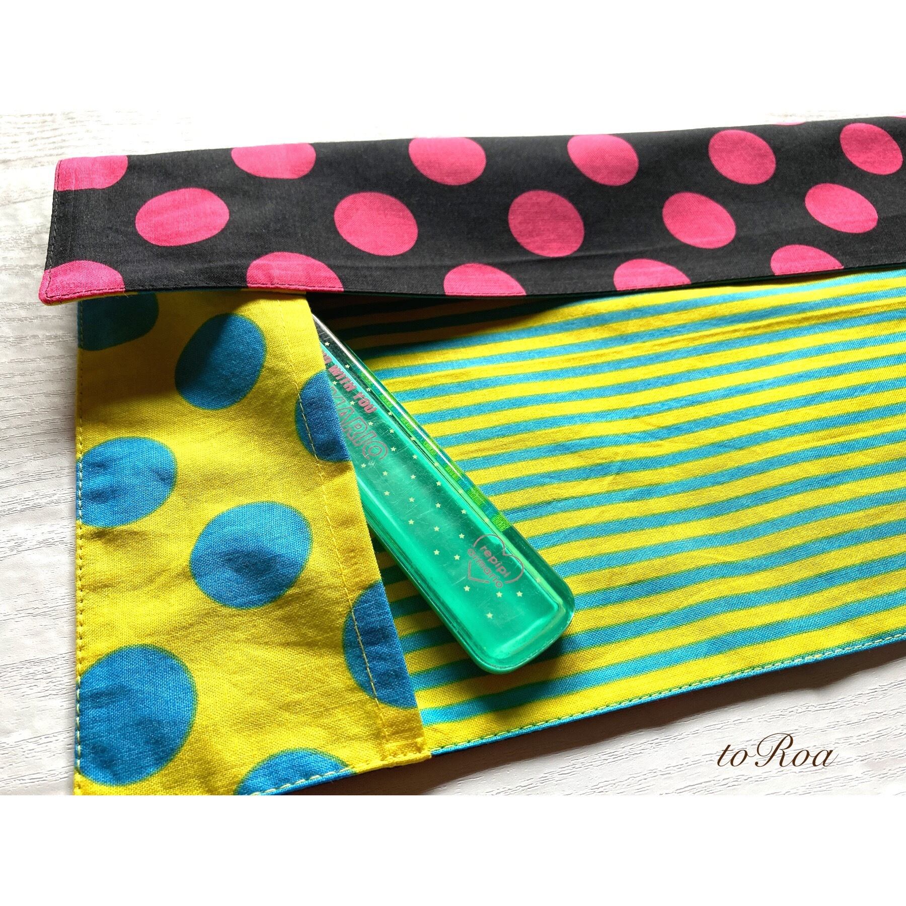 袋部分にお箸を入れてくるくる丸めて紐で縛ればお箸袋にもなり給食袋いらずのナフキン。
