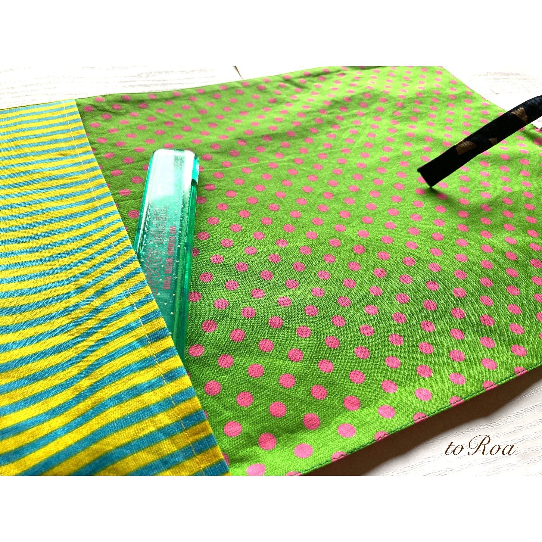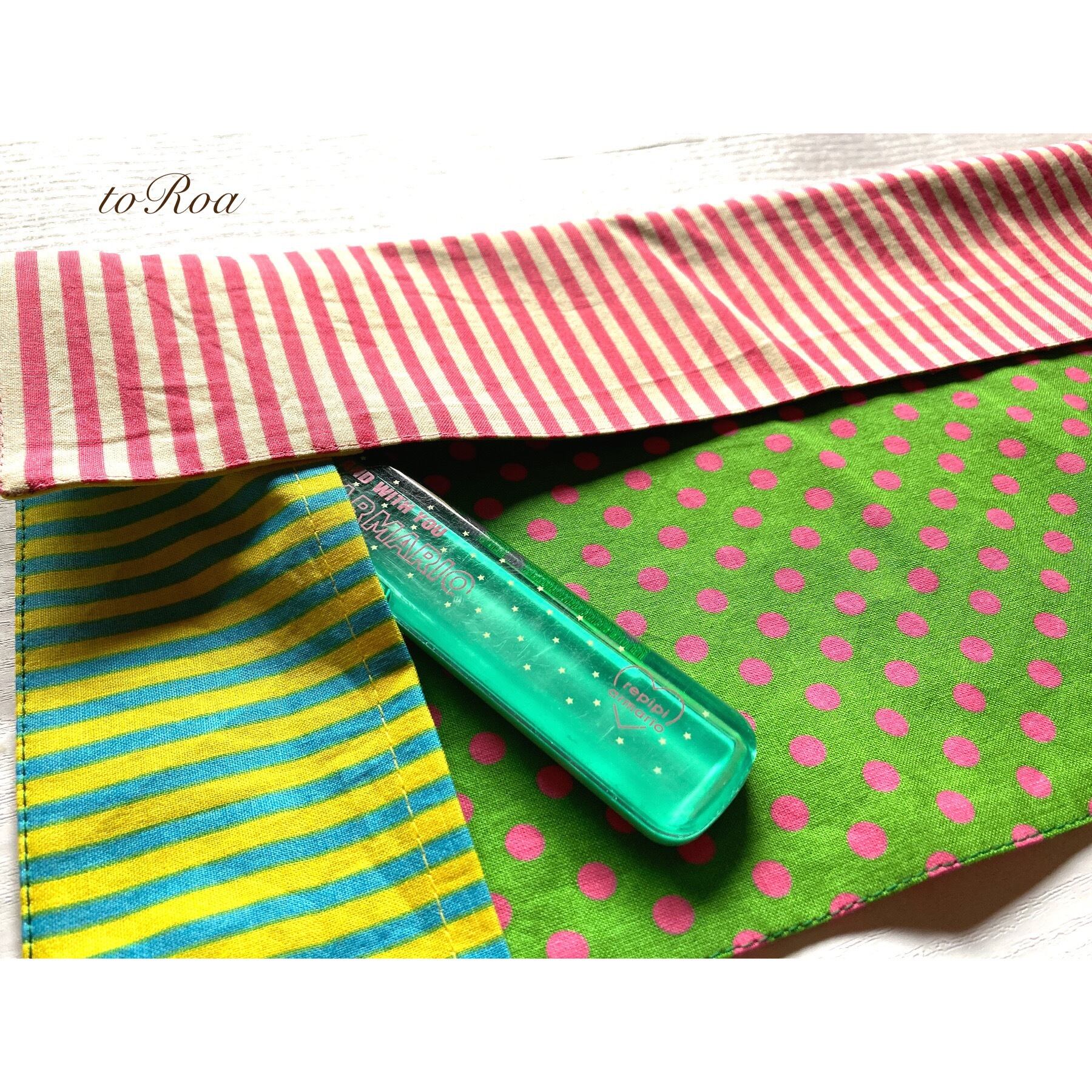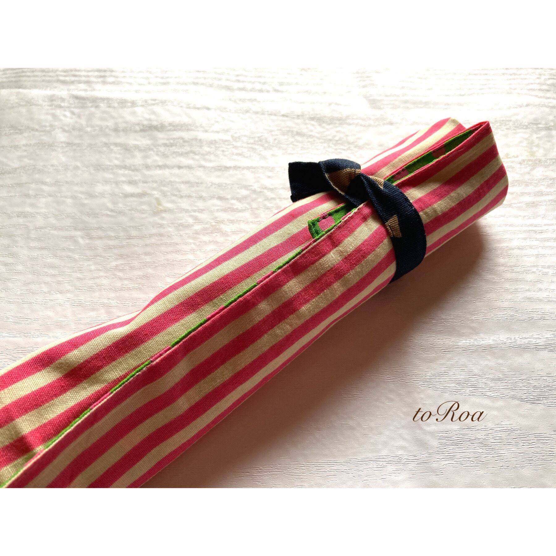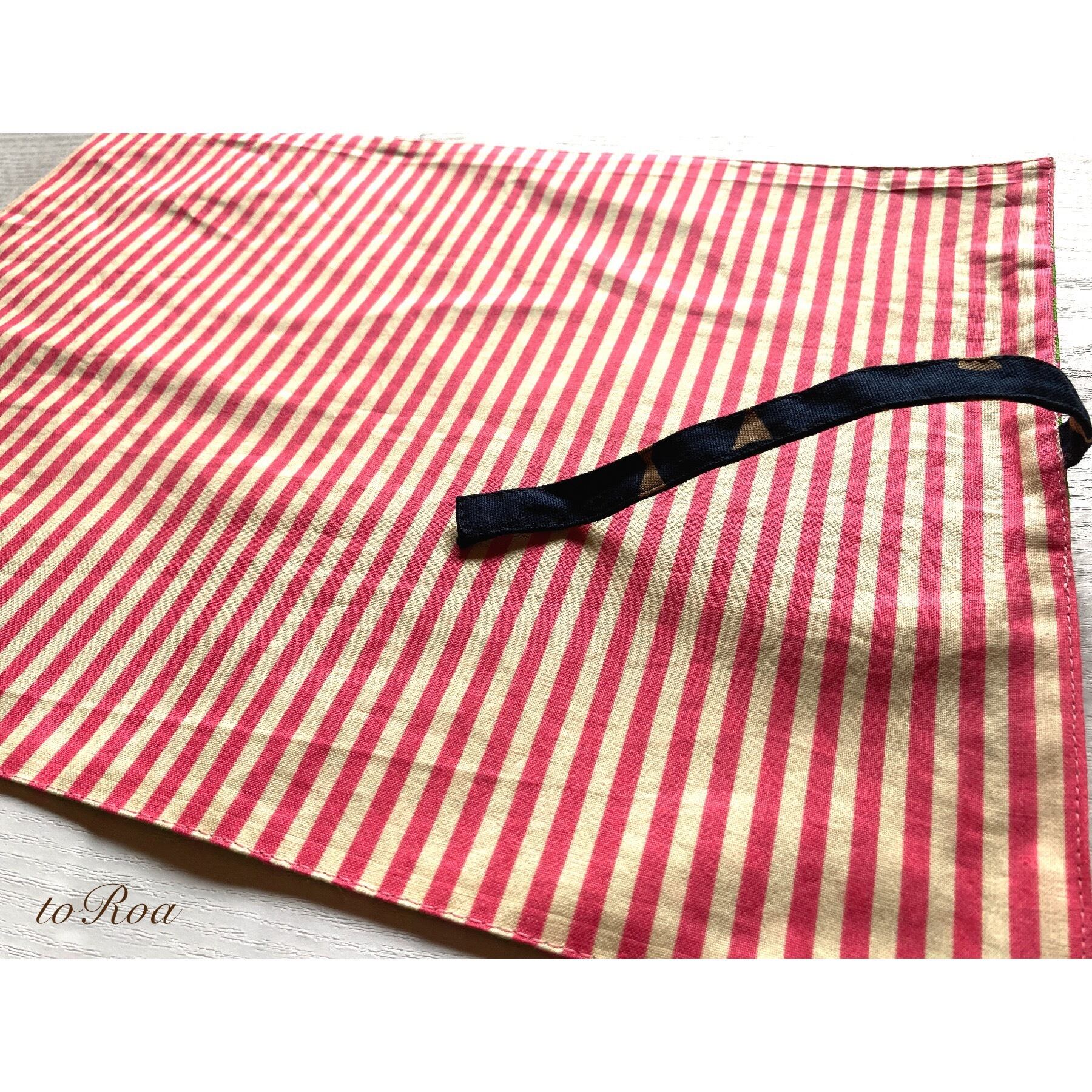 袋部分にお箸を入れてくるくる丸めて紐で縛ればお箸袋にもなり給食袋いらずのナフキン。
