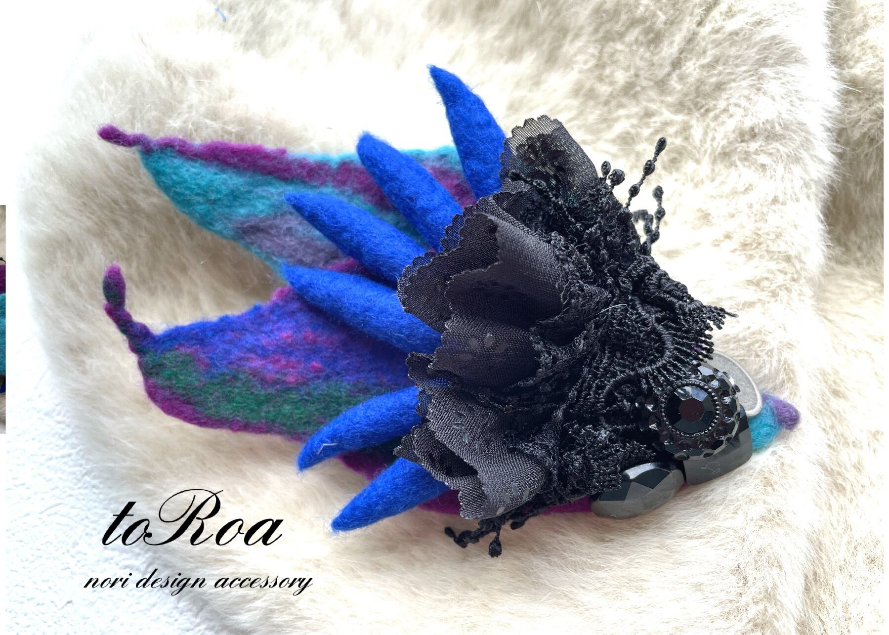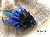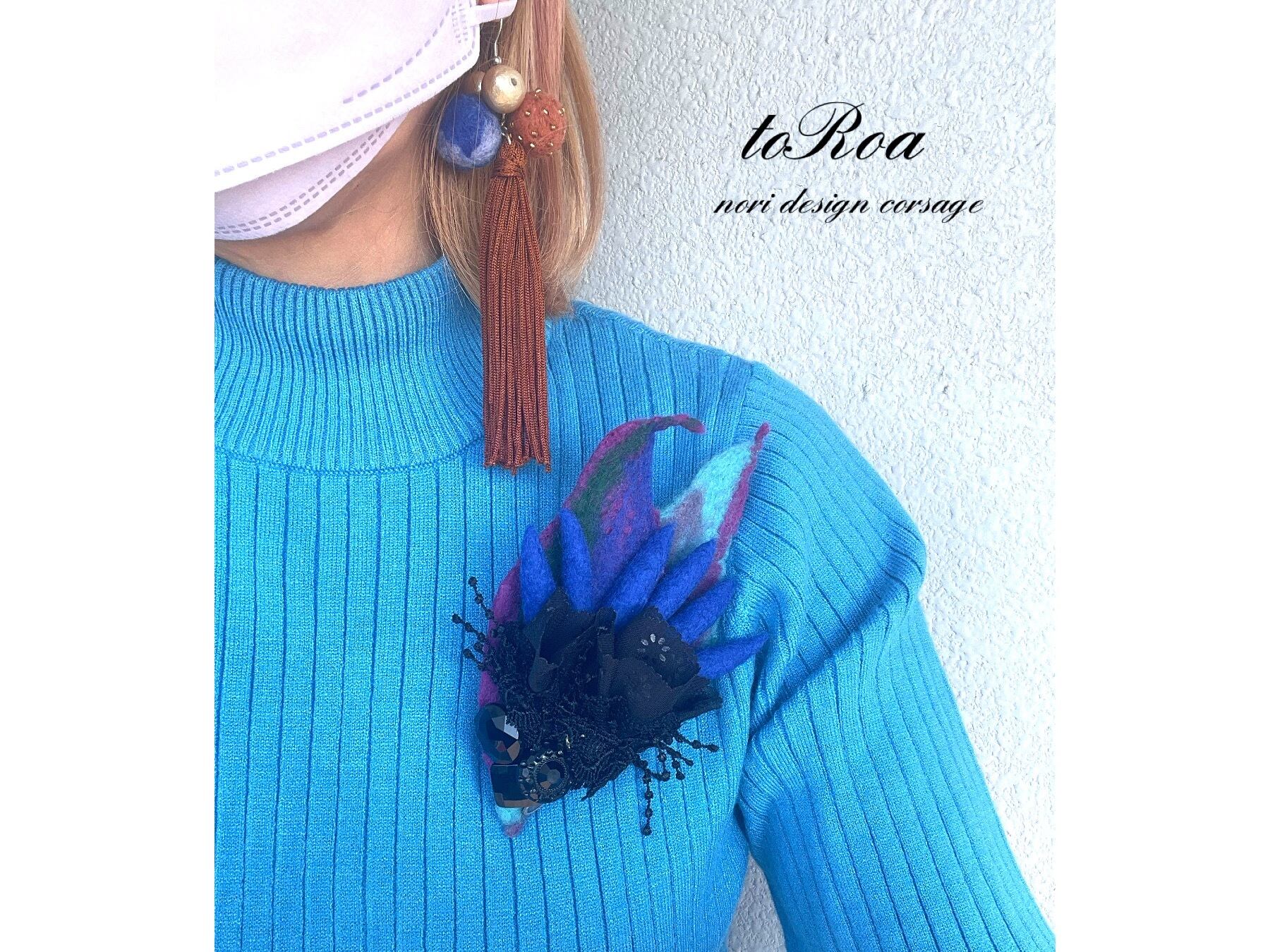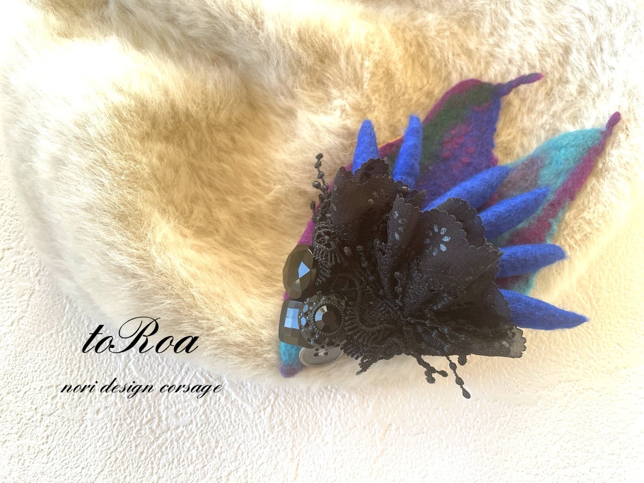 toRoaコサージュ☆アンティークボタンとパープルトルコブルー
