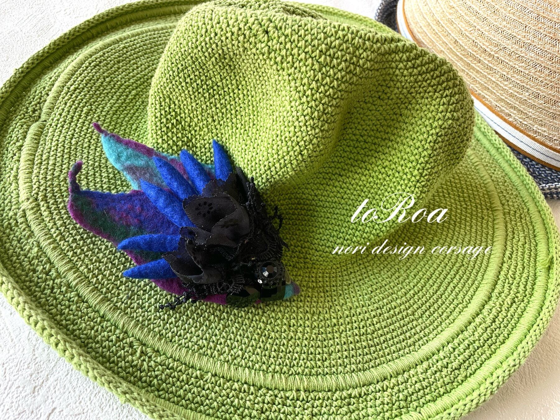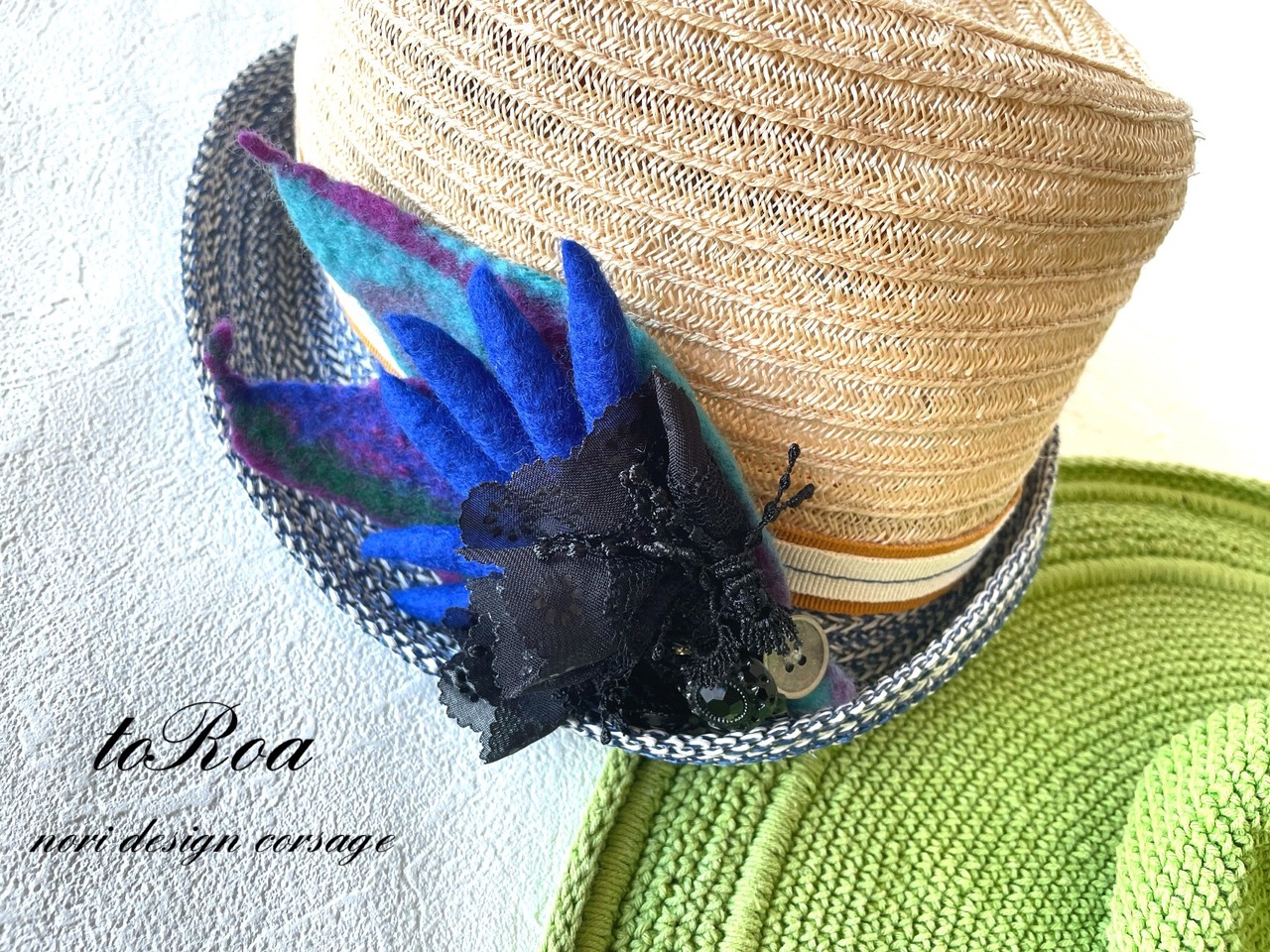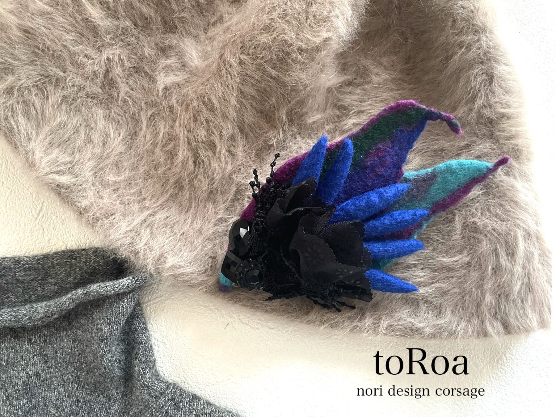 toRoaコサージュ☆アンティークボタンとパープルトルコブルー