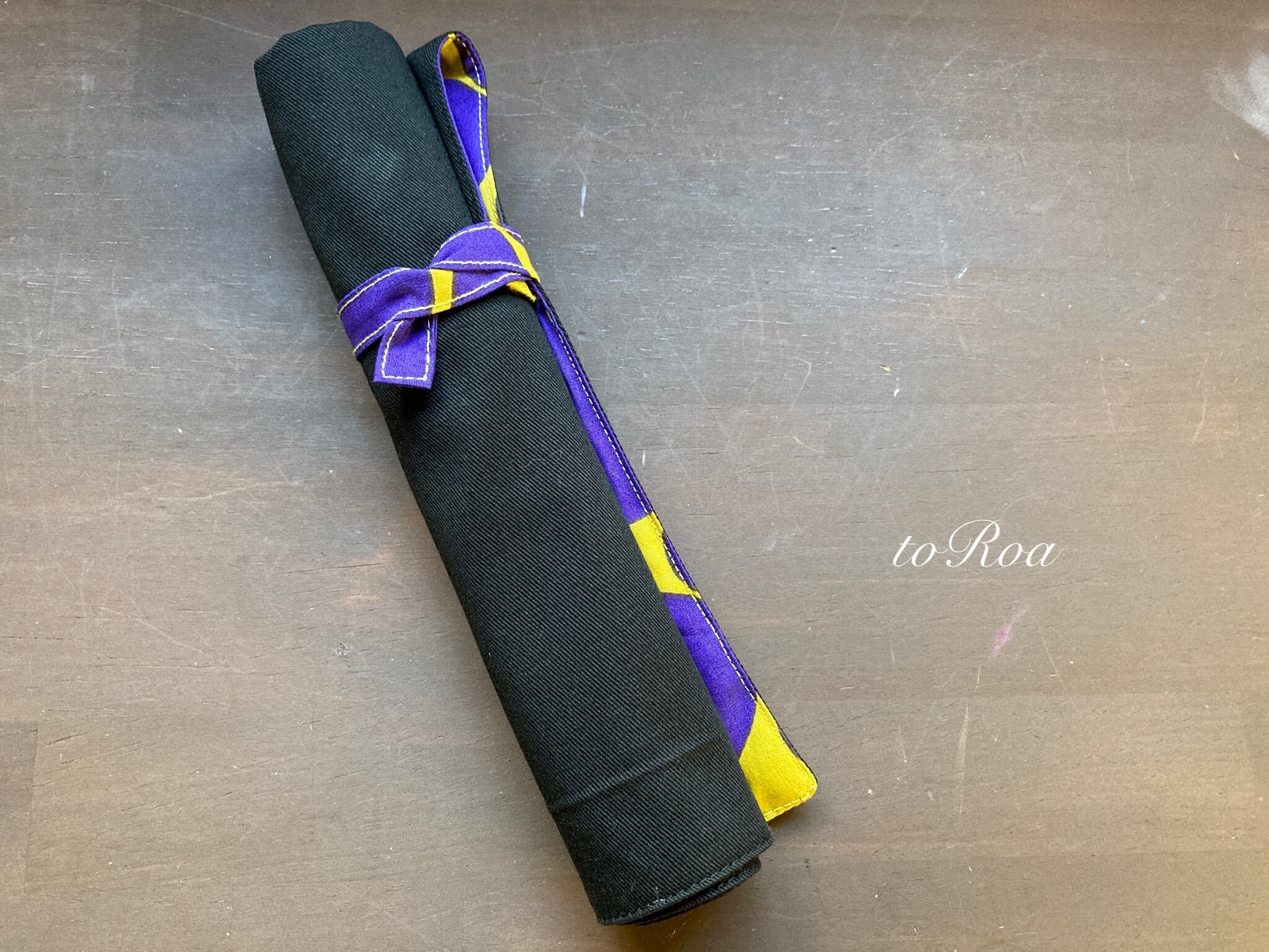 袋部分にお箸を入れてくるくる丸めて紐で縛ればお箸袋にもなり給食袋いらずのナフキン。