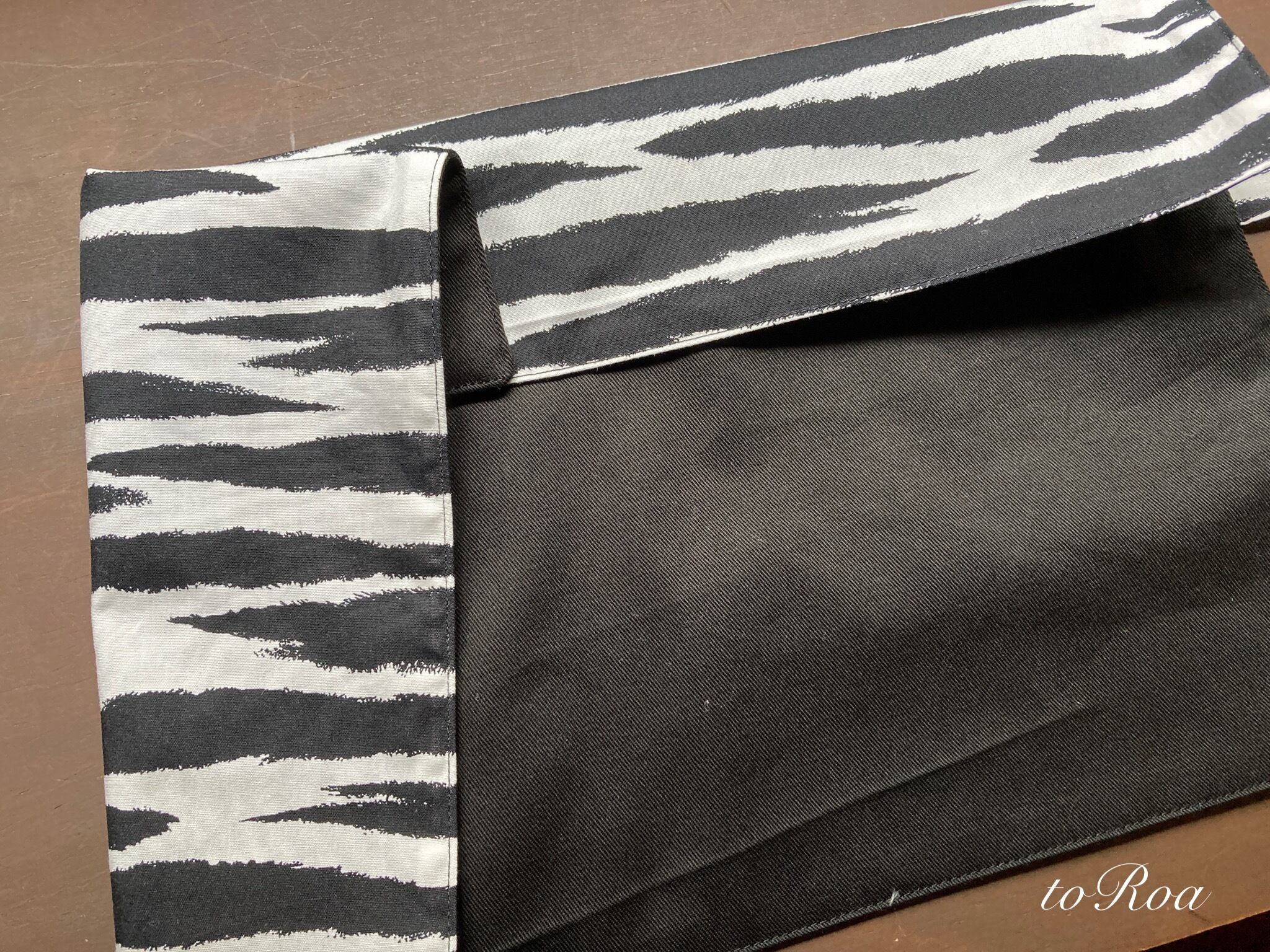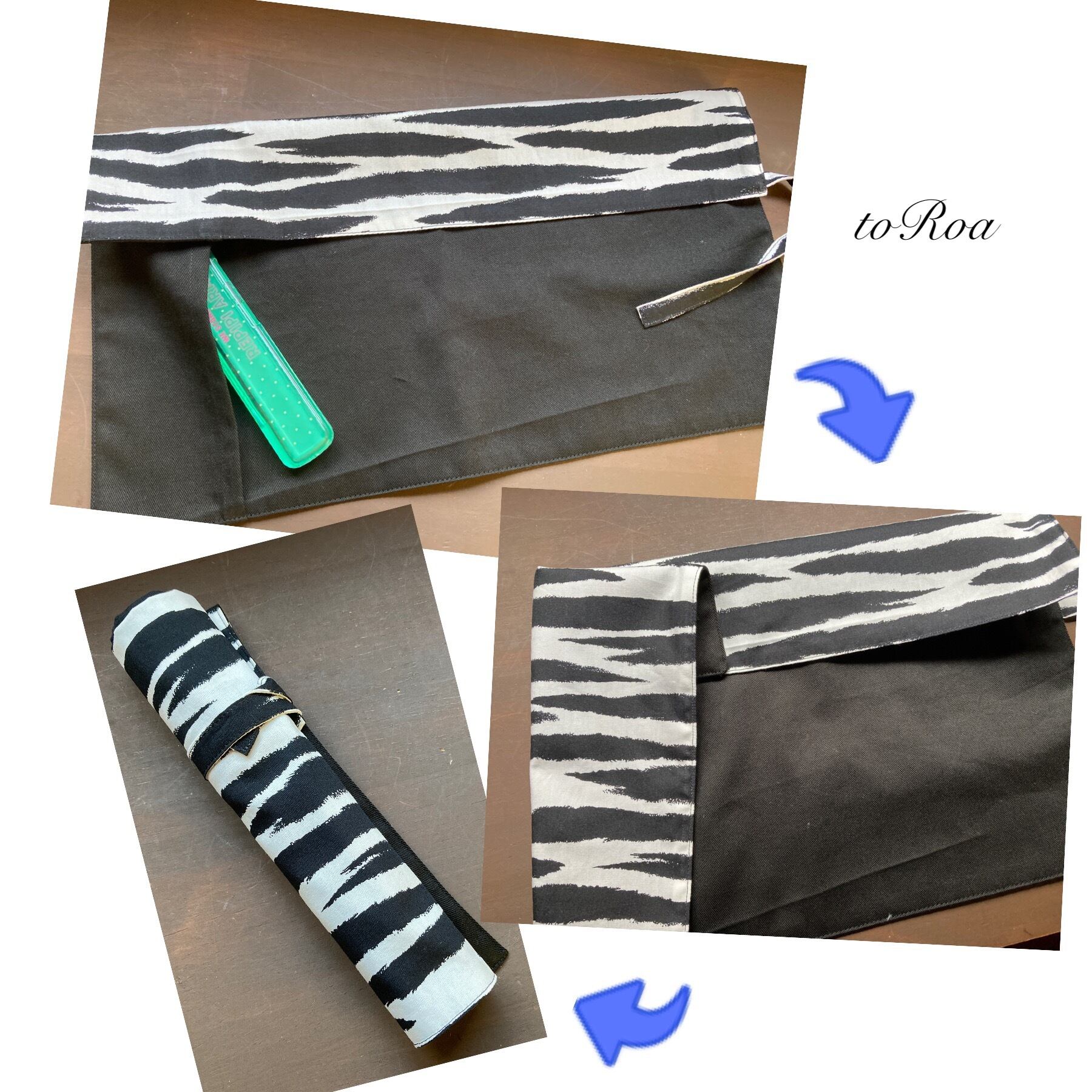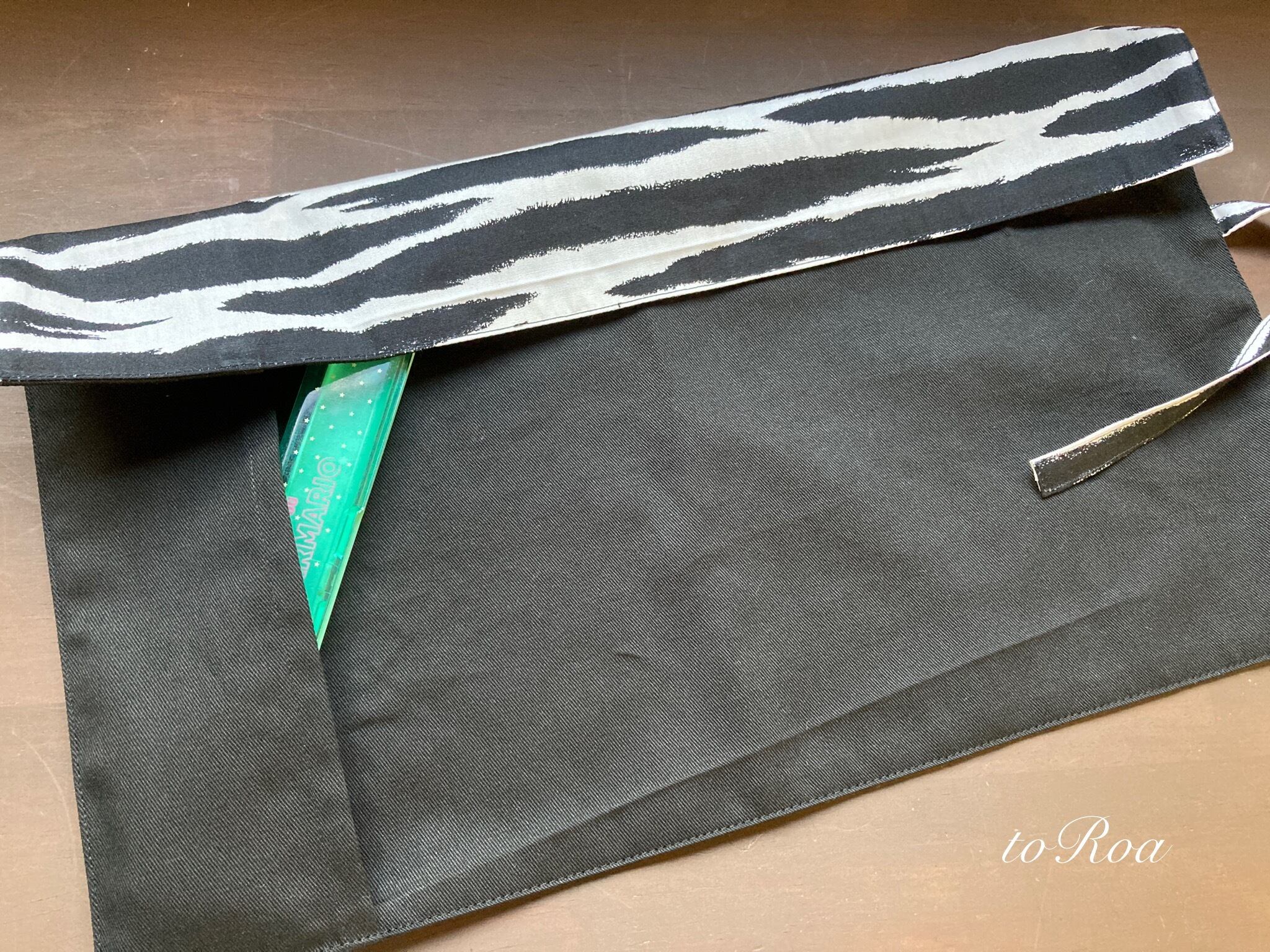 袋部分にお箸を入れてくるくる丸めて紐で縛ればお箸袋にもなり給食袋いらずのナフキン。