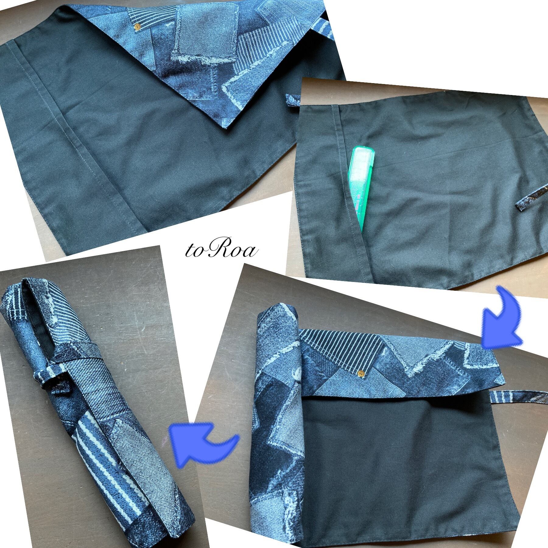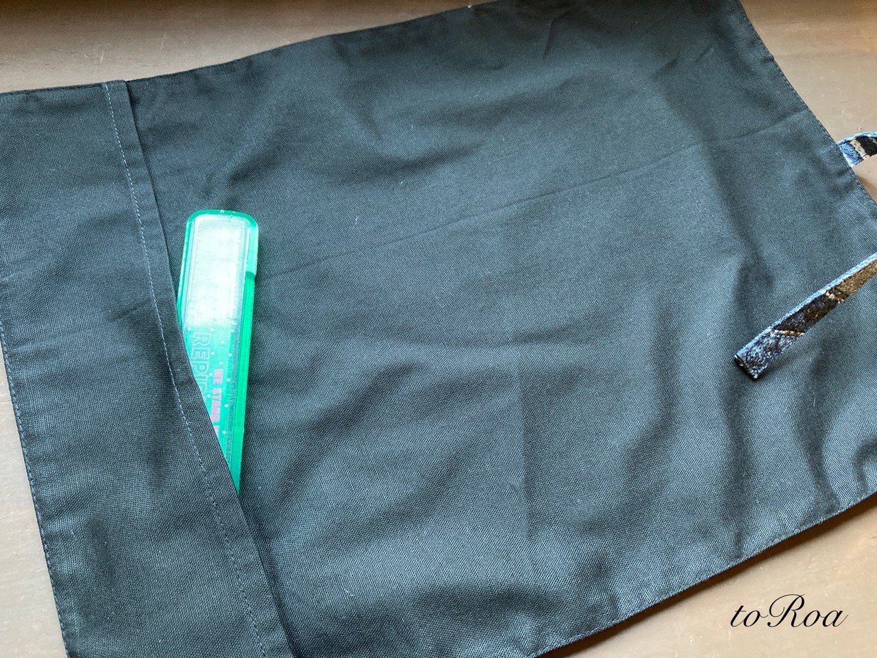袋部分にお箸を入れてくるくる丸めて紐で縛ればお箸袋にもなり給食袋いらずのリバーシブルナフキン。