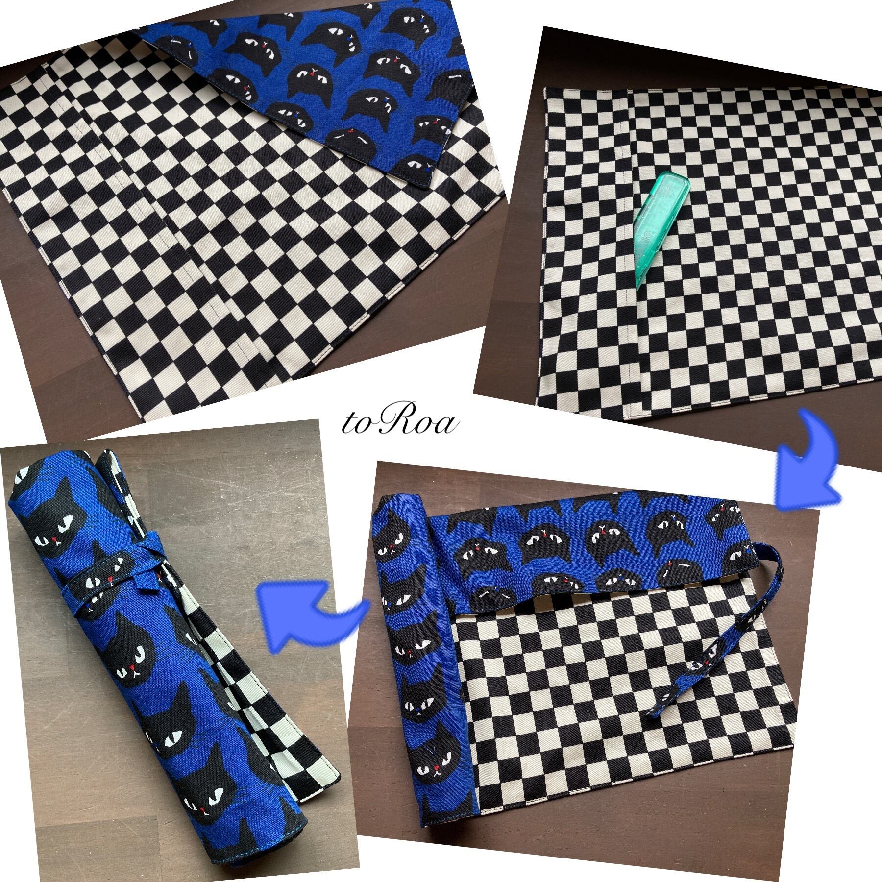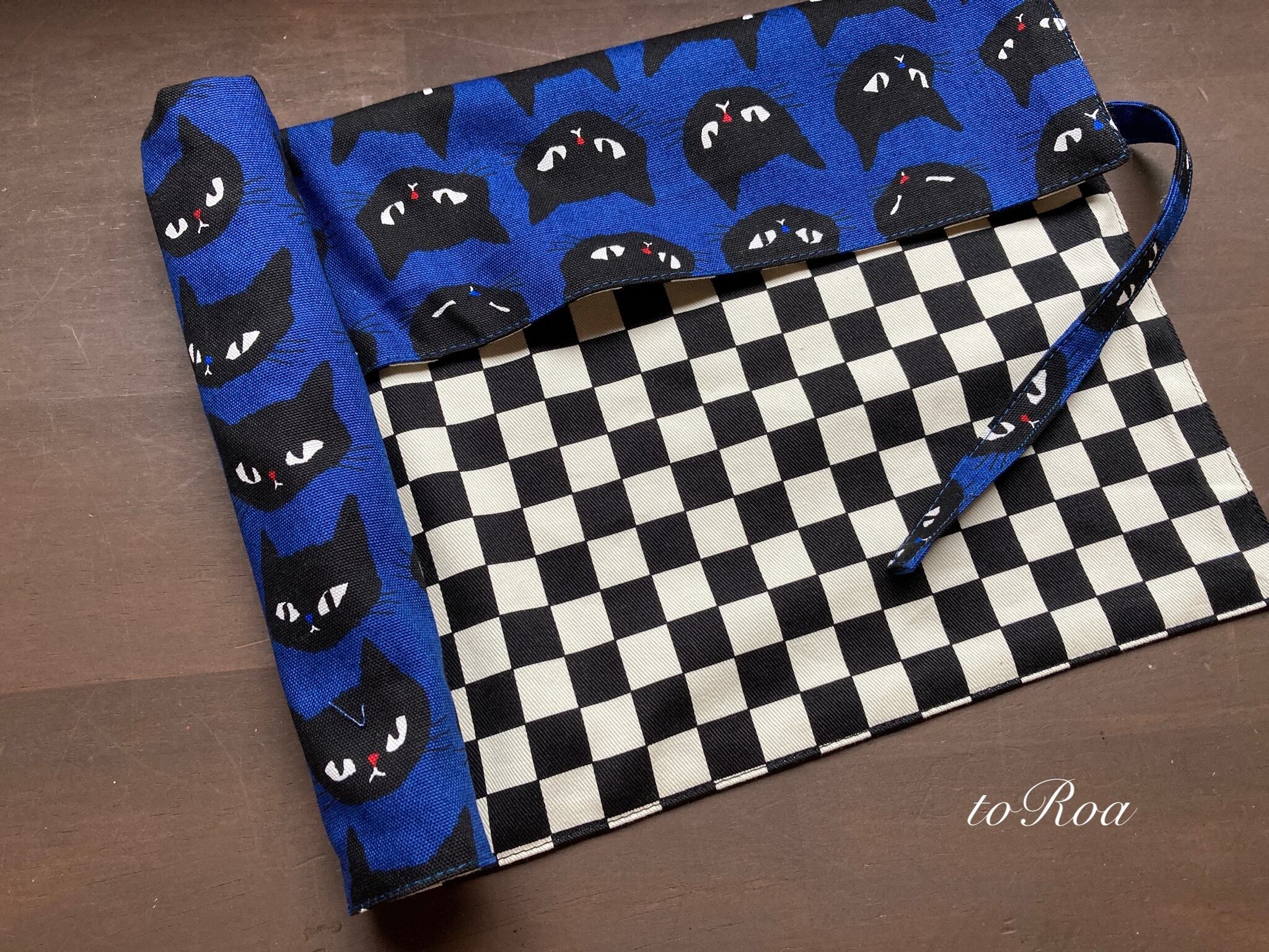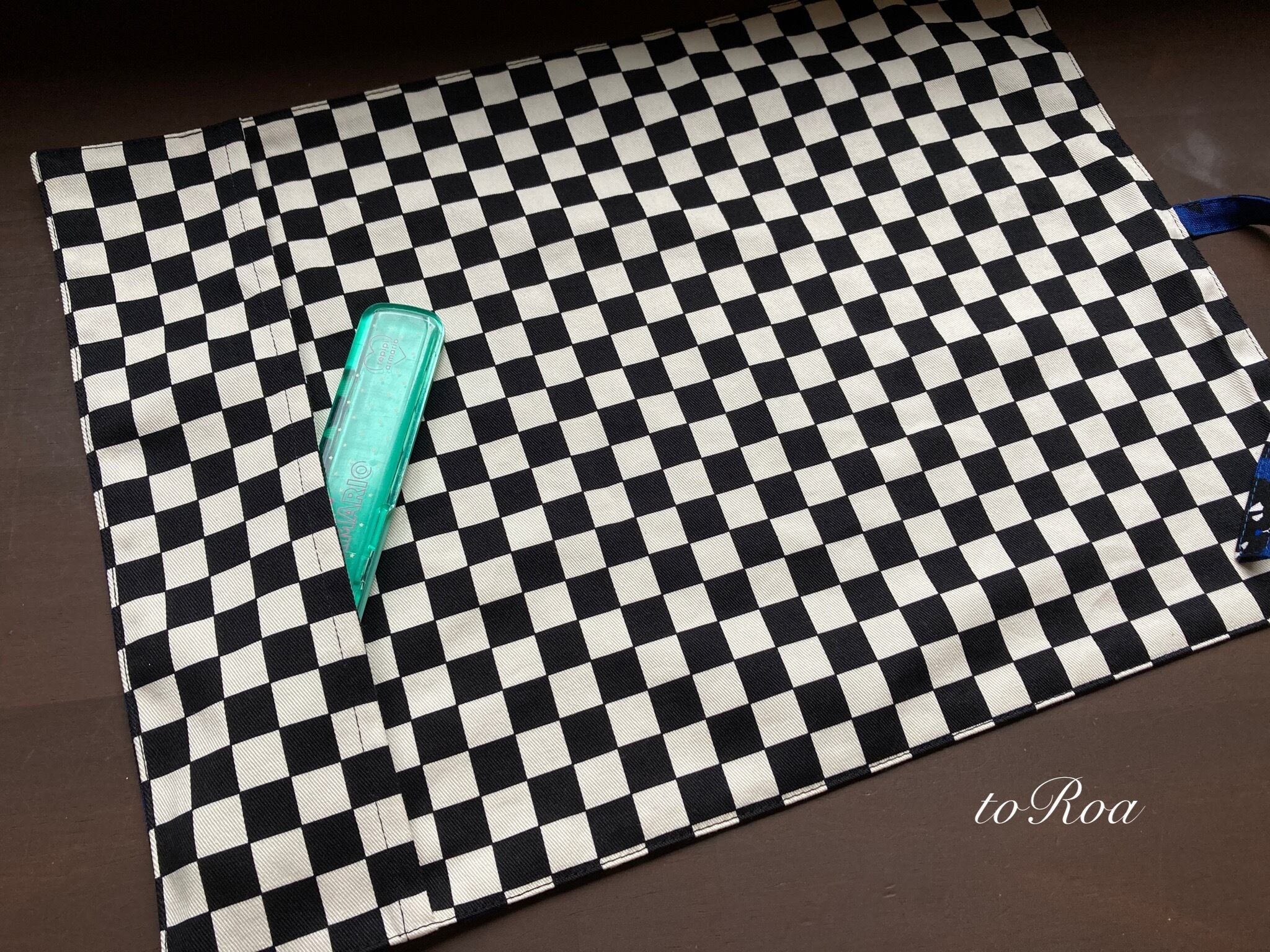 袋部分にお箸を入れてくるくる丸めて紐で縛ればお箸袋にもなり給食袋いらずのナフキン。
