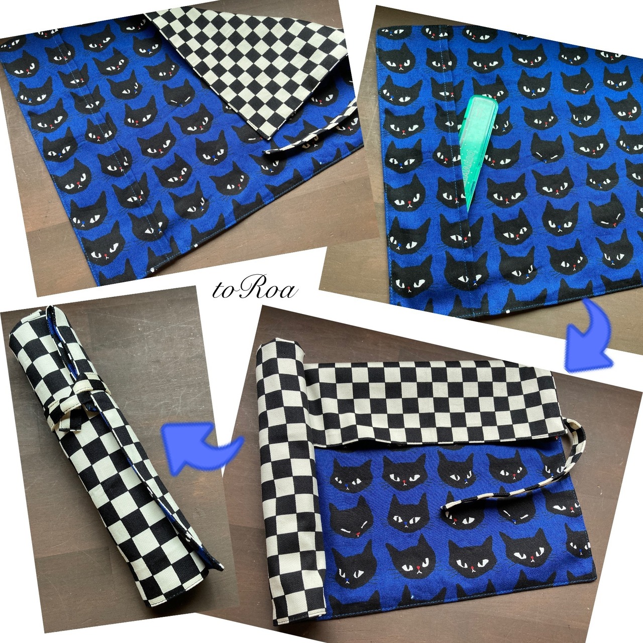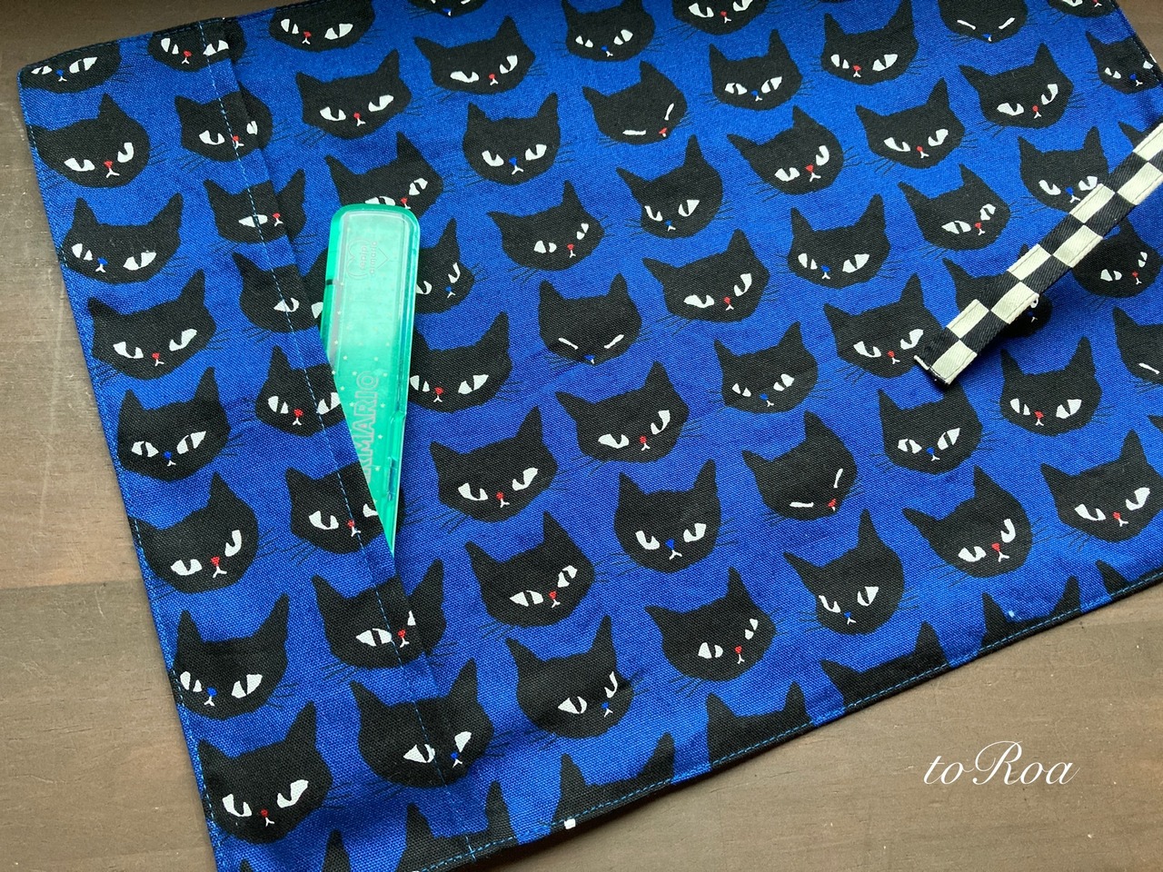 袋部分にお箸を入れてくるくる丸めて紐で縛ればお箸袋にもなり給食袋いらずのナフキン。