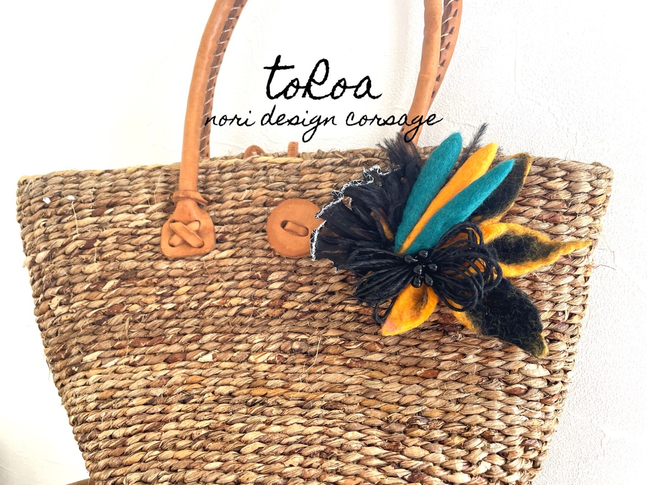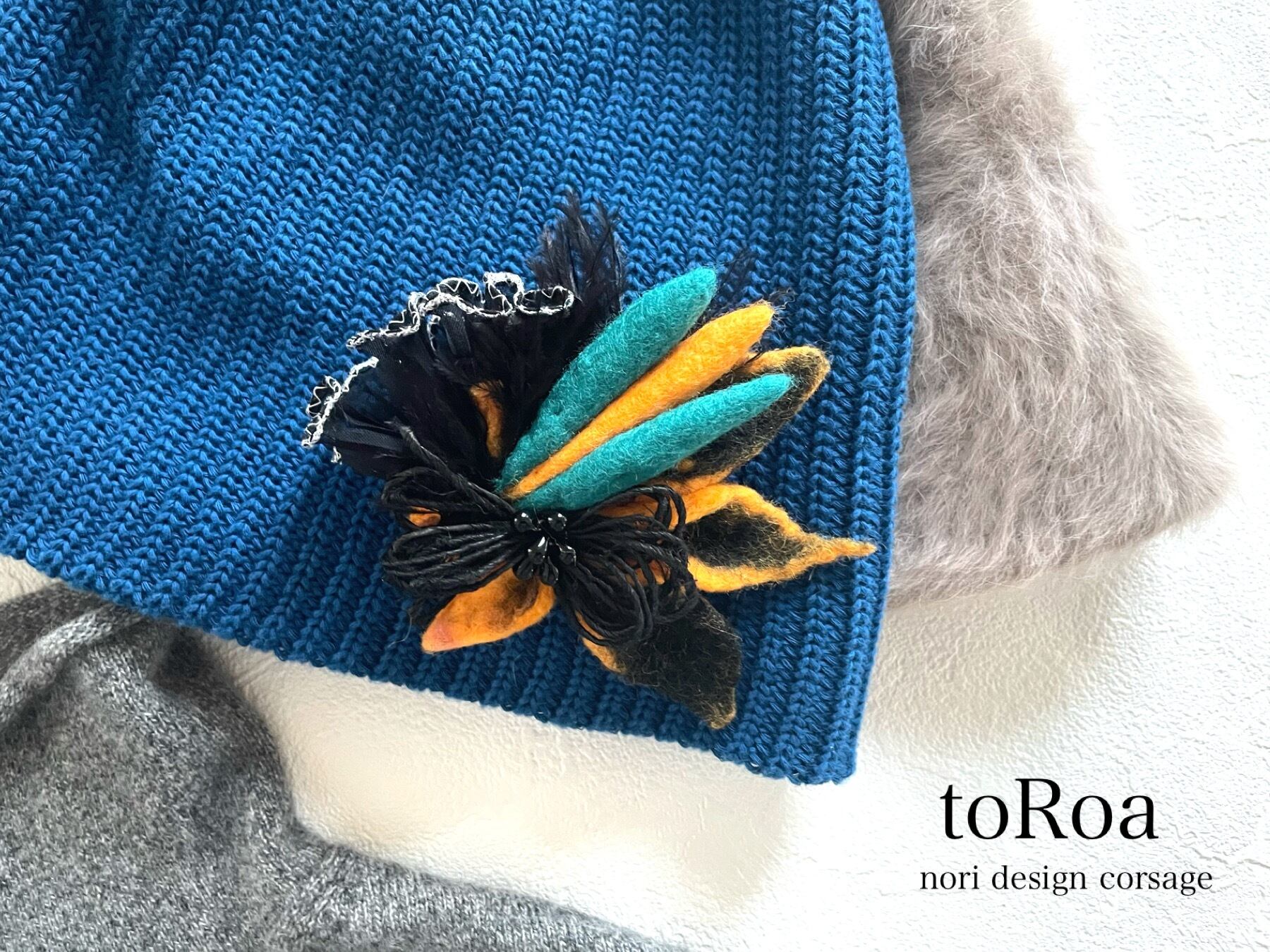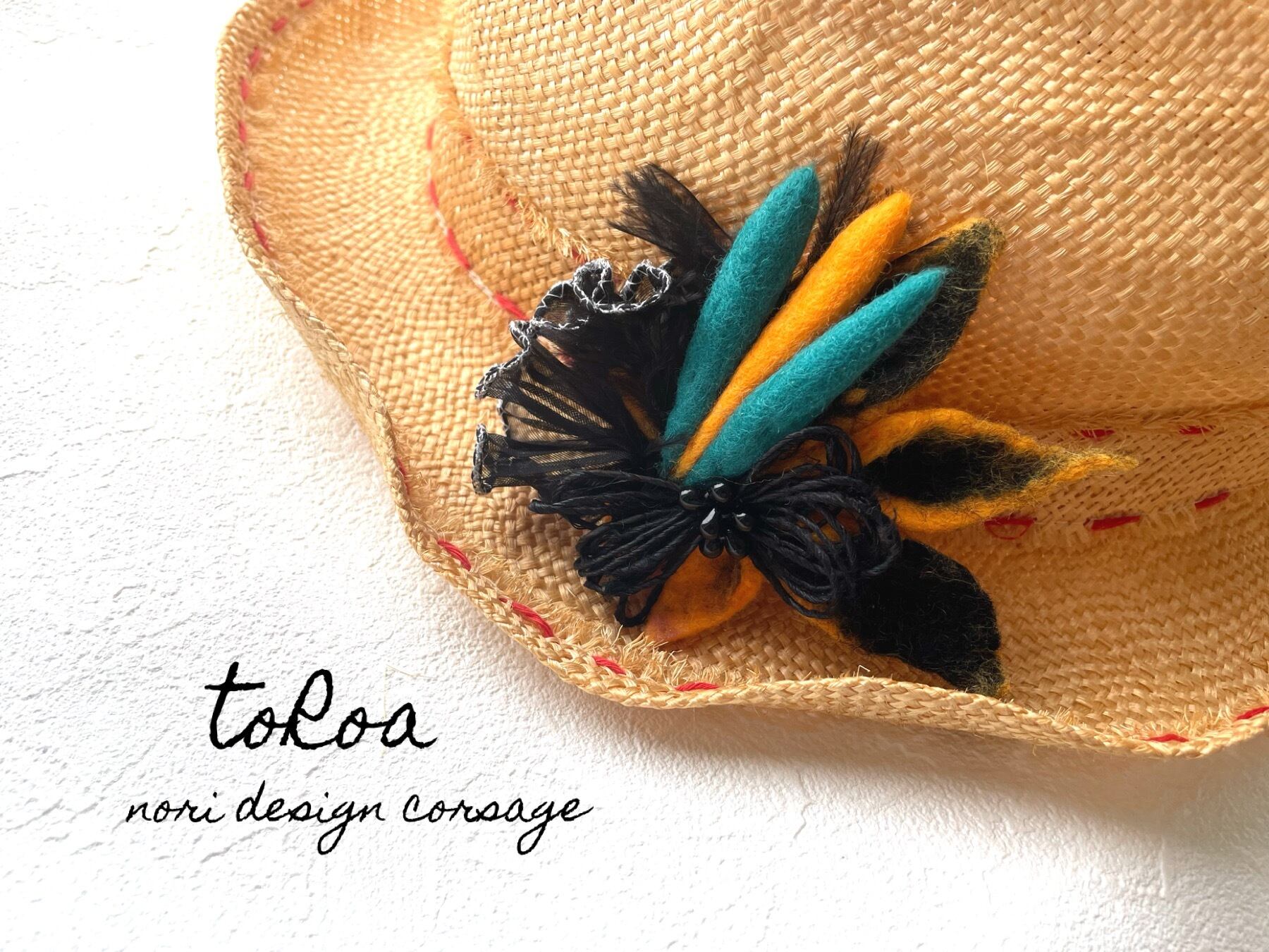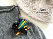 toRoaミニサイズコサージュブローチ☆ブラックイエローグリーン