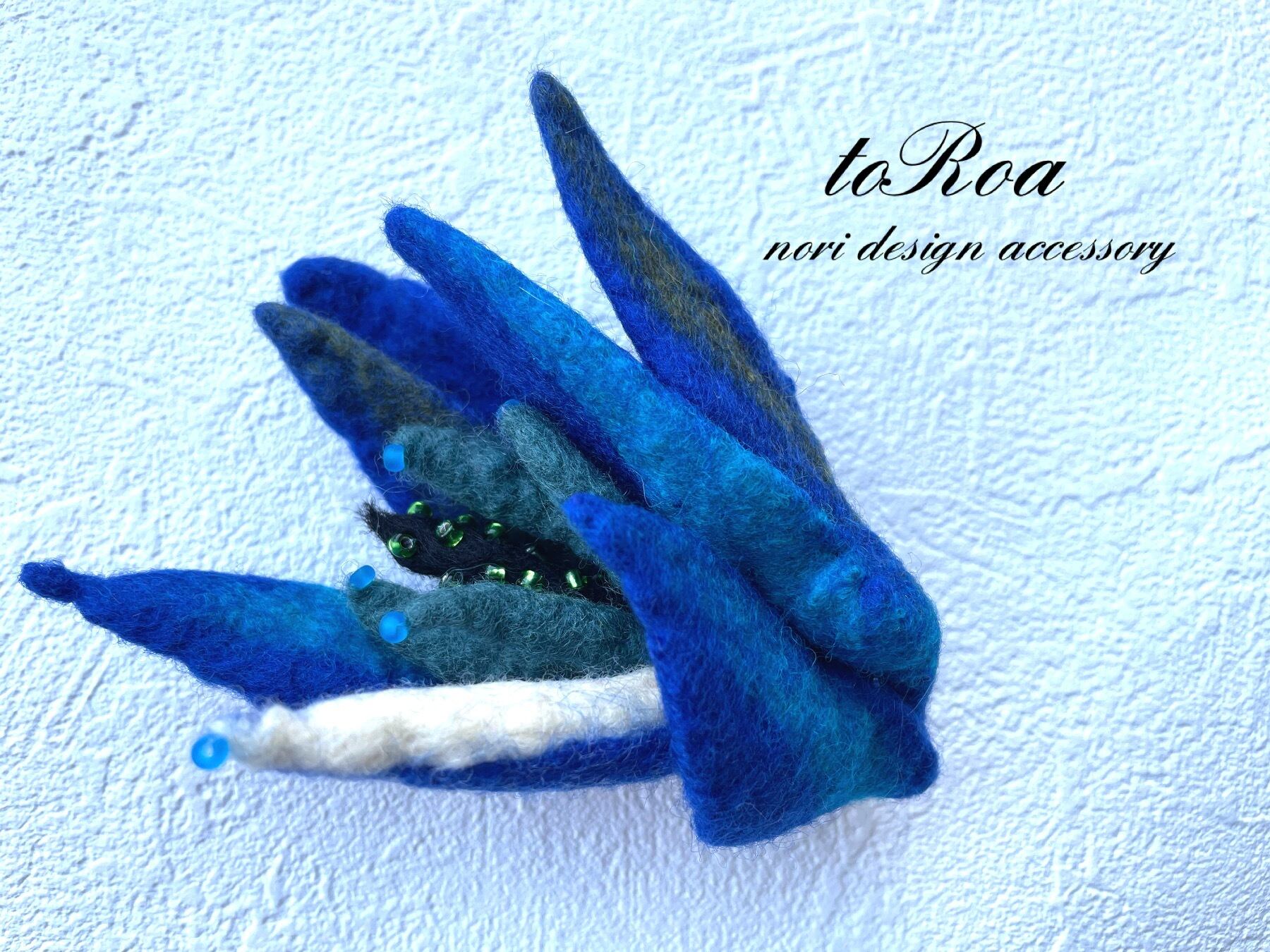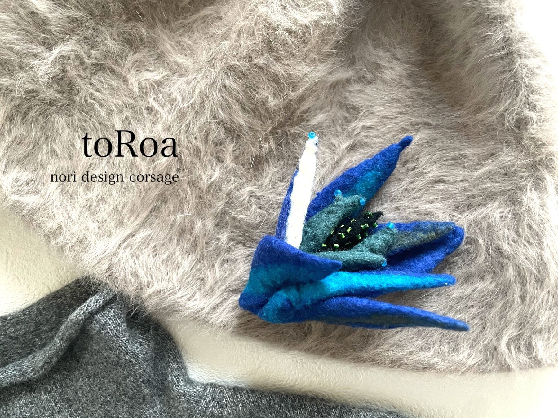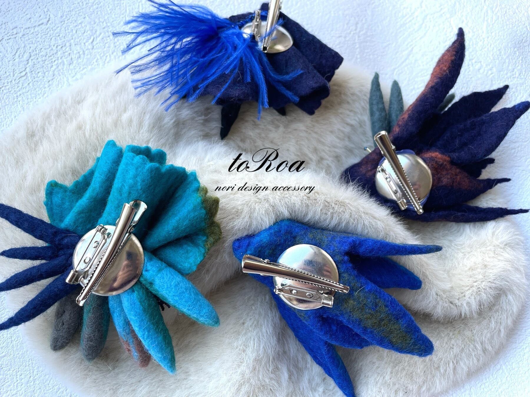 toRoaブルーコサージュブローチ☆ロイヤルブルーフラワー