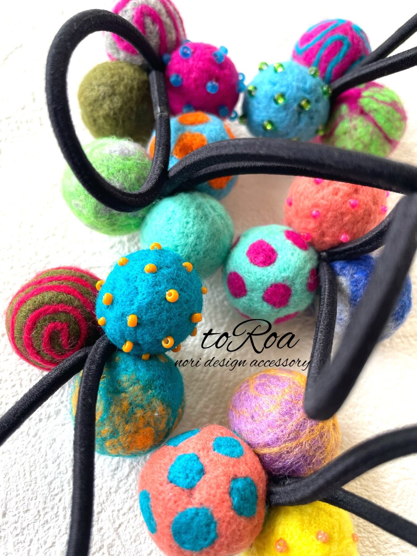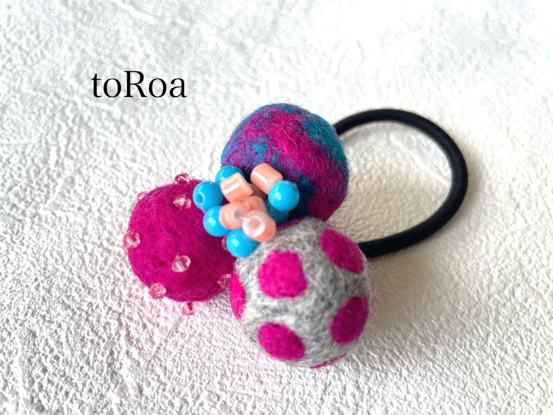 toRoaオリジナル⭐︎カラフルヘアゴムグレーピンクドット