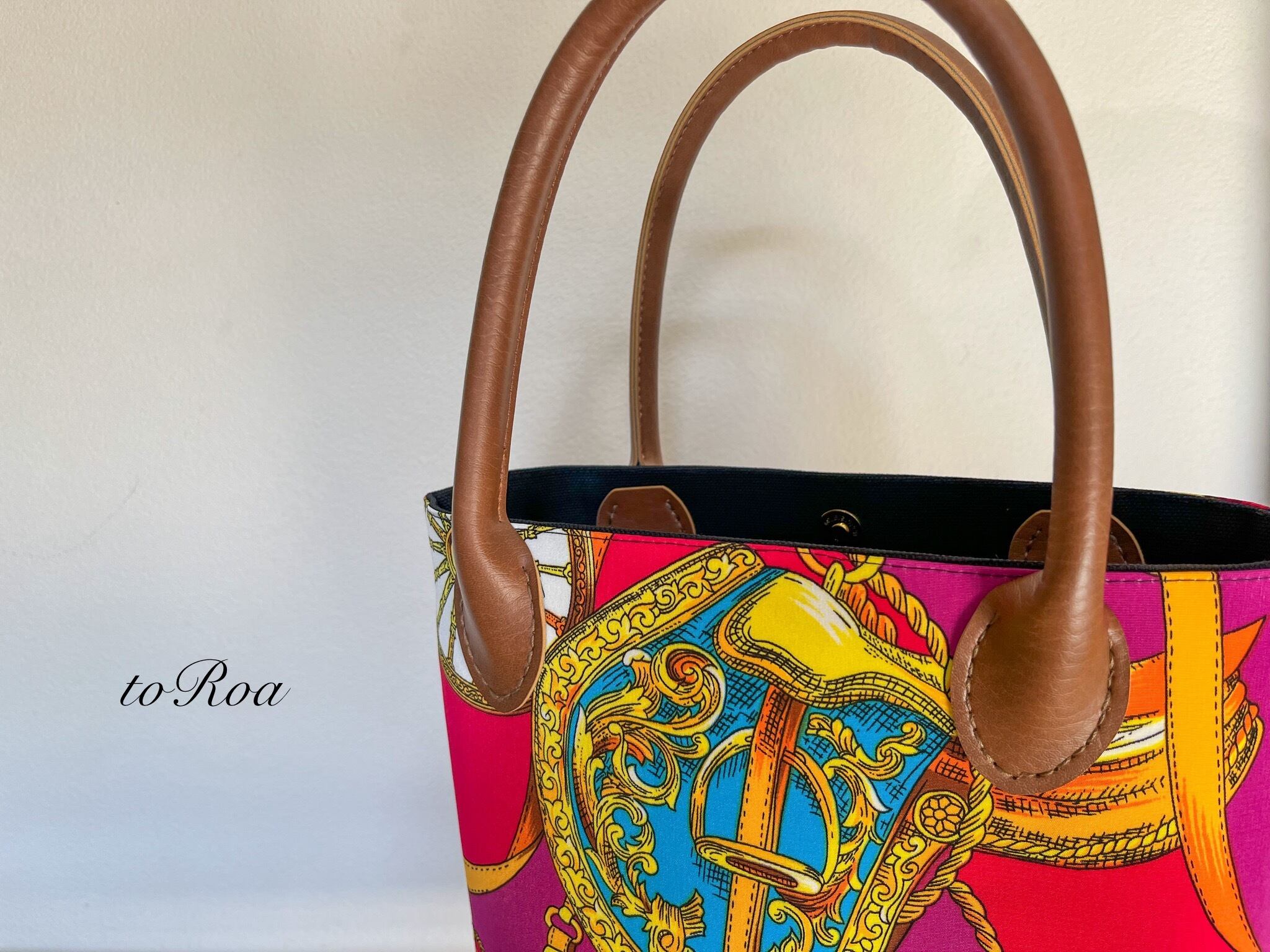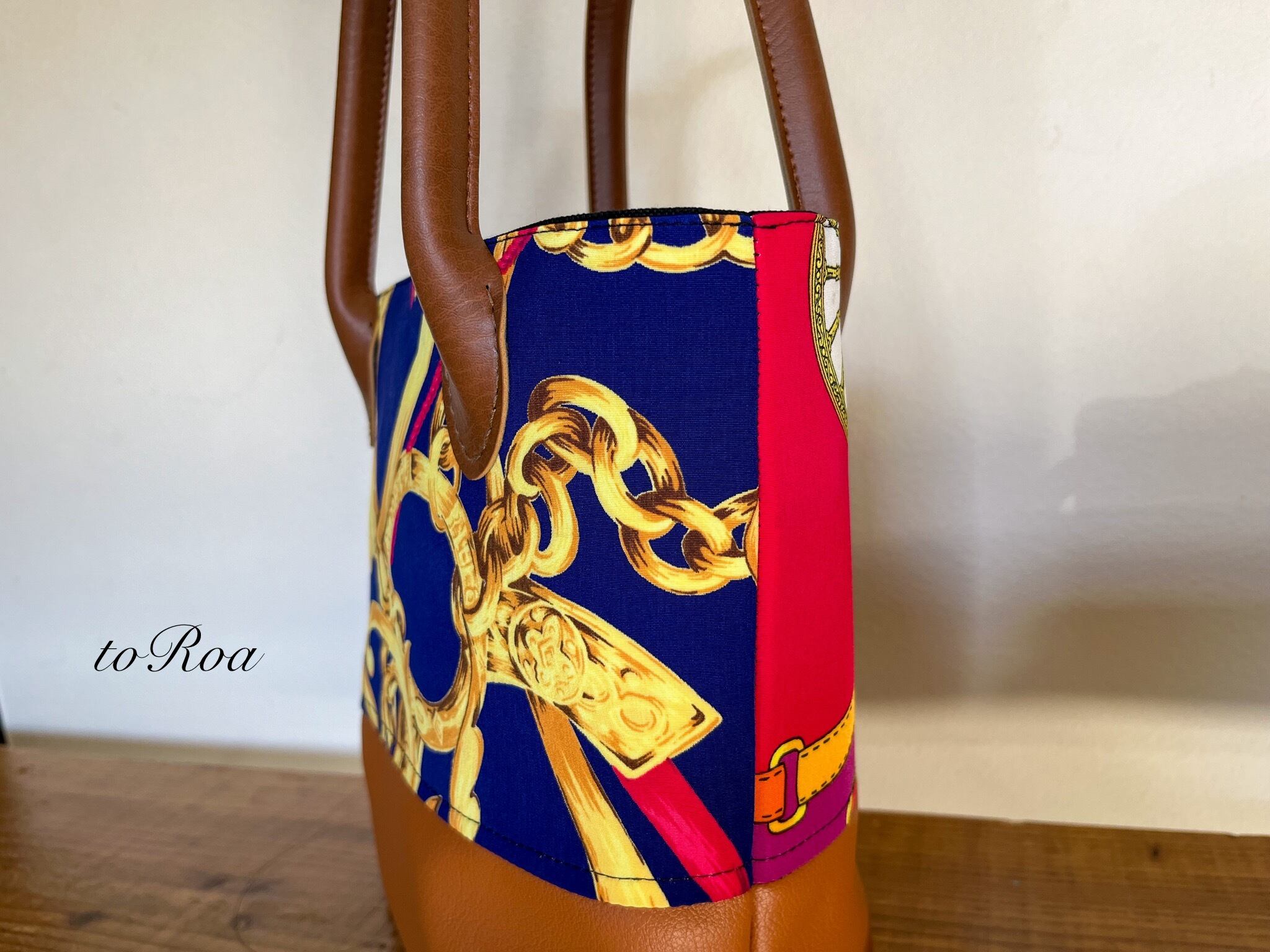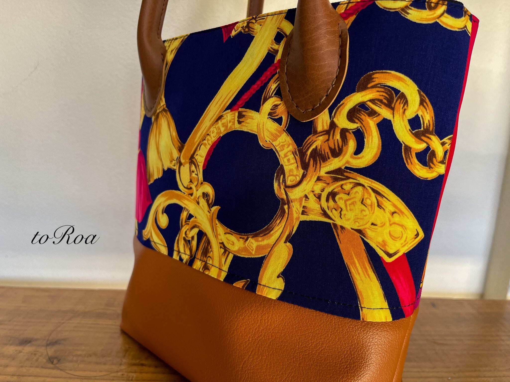 チェーン柄スカーフ生地柄違いMサイズバッグ